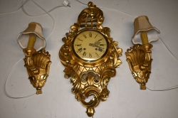 Guldförgylld pendyl med lampetter