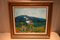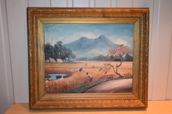 Oljemålning osignerad (Indonesien) sekelsk 18/1900.tal mmr.62x74cm (åldersrelaterad slitage)