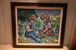 Oramad tavla av Nils "Björnjägaren" Rundgren 1971 mått=42x52cm