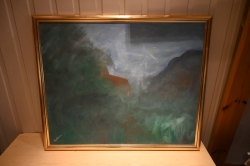 Oramad tavla av Nils "Björnjägaren" Rundgren 1962 mått=28x48cm (kantslitage, fuktskador)