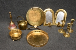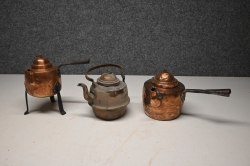 Parti kopparföremål bl a 1800.tal, medicinflaskor, bestick ns m.m