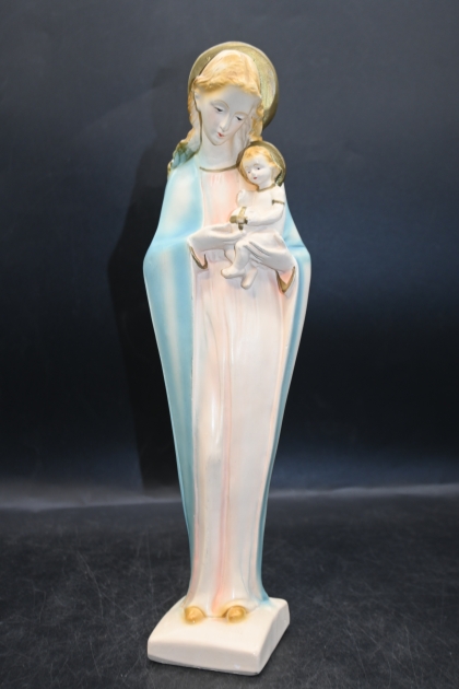 578. Äldre figurin i gips H.33cm (färgsläpp förekommer)