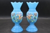 9. Äldre handmålade parvaser i opalglas H.18cm