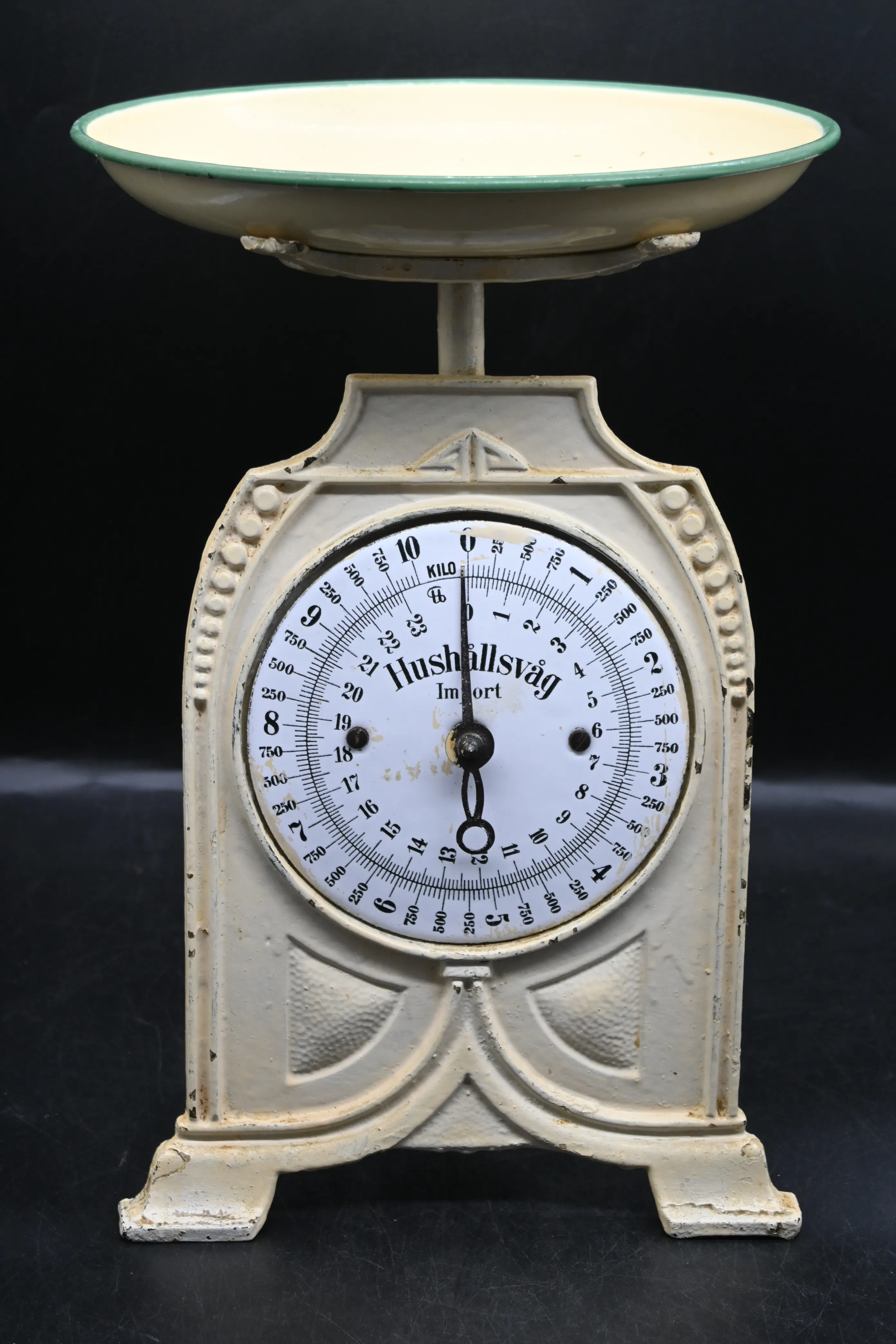 2. Äldre hushållsvåg i gjutjärn H.32cm