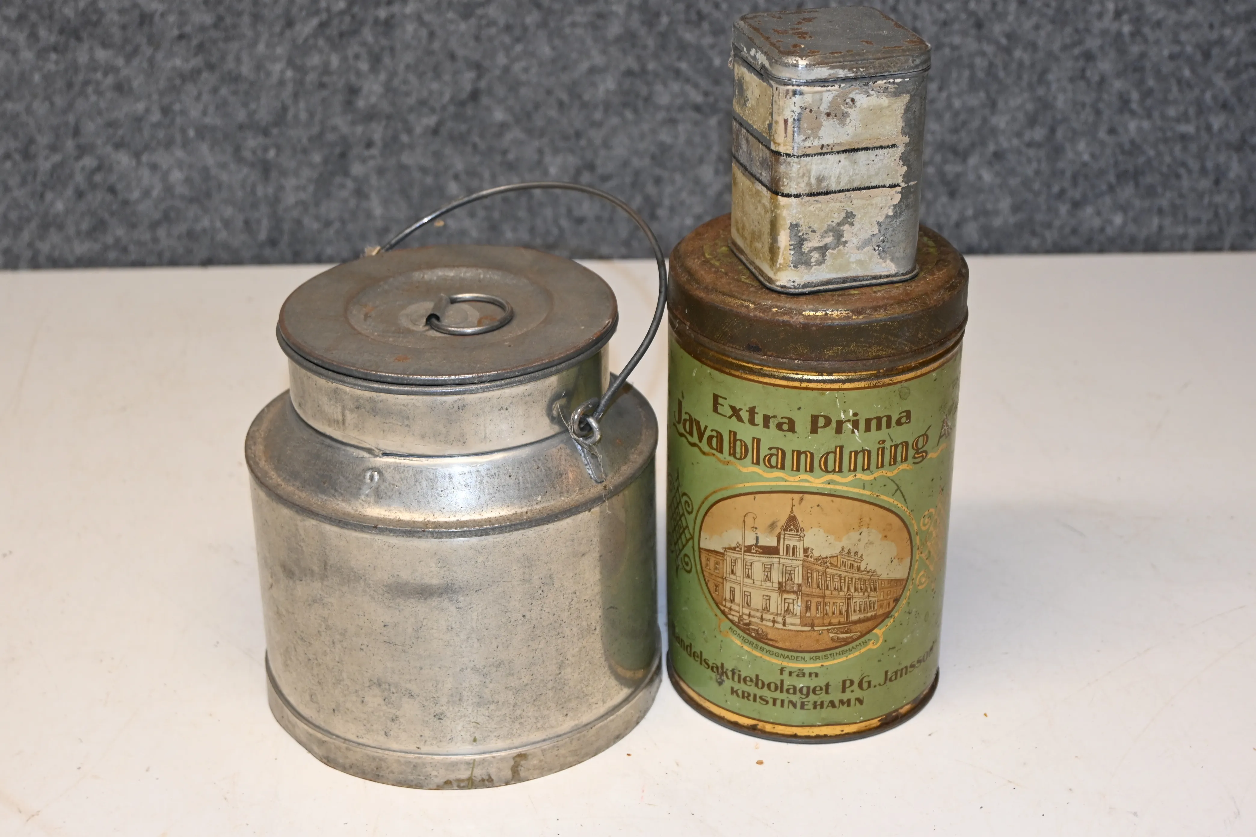 Äldre plåtburkar 2st + mjölkkanna 2L