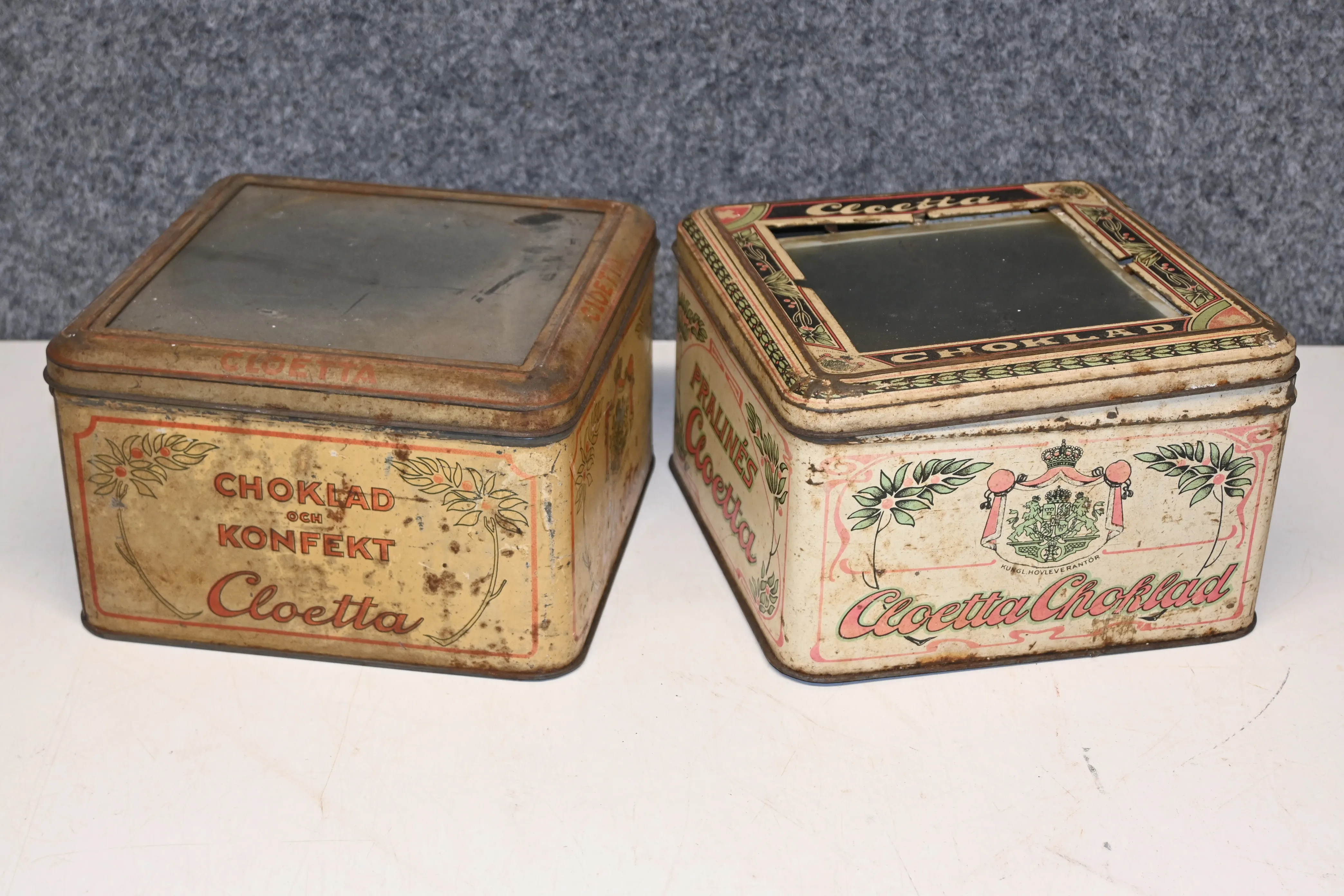Äldre plåtburkar 2st Cloetta (bruksskick)