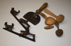 10. Äldre skridskor, kåsa, träskedar, allmogeverktyg