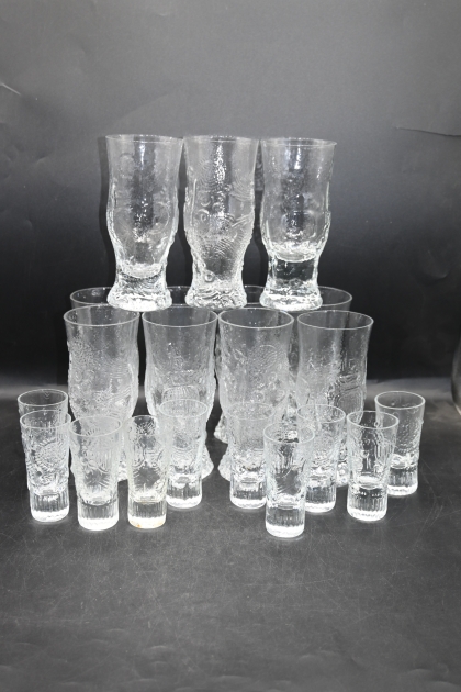 Ölglas 11st + 10st snapsglas, Kosta Boda "Dalom" Ann & Göran Wärff (nagg förekommer)