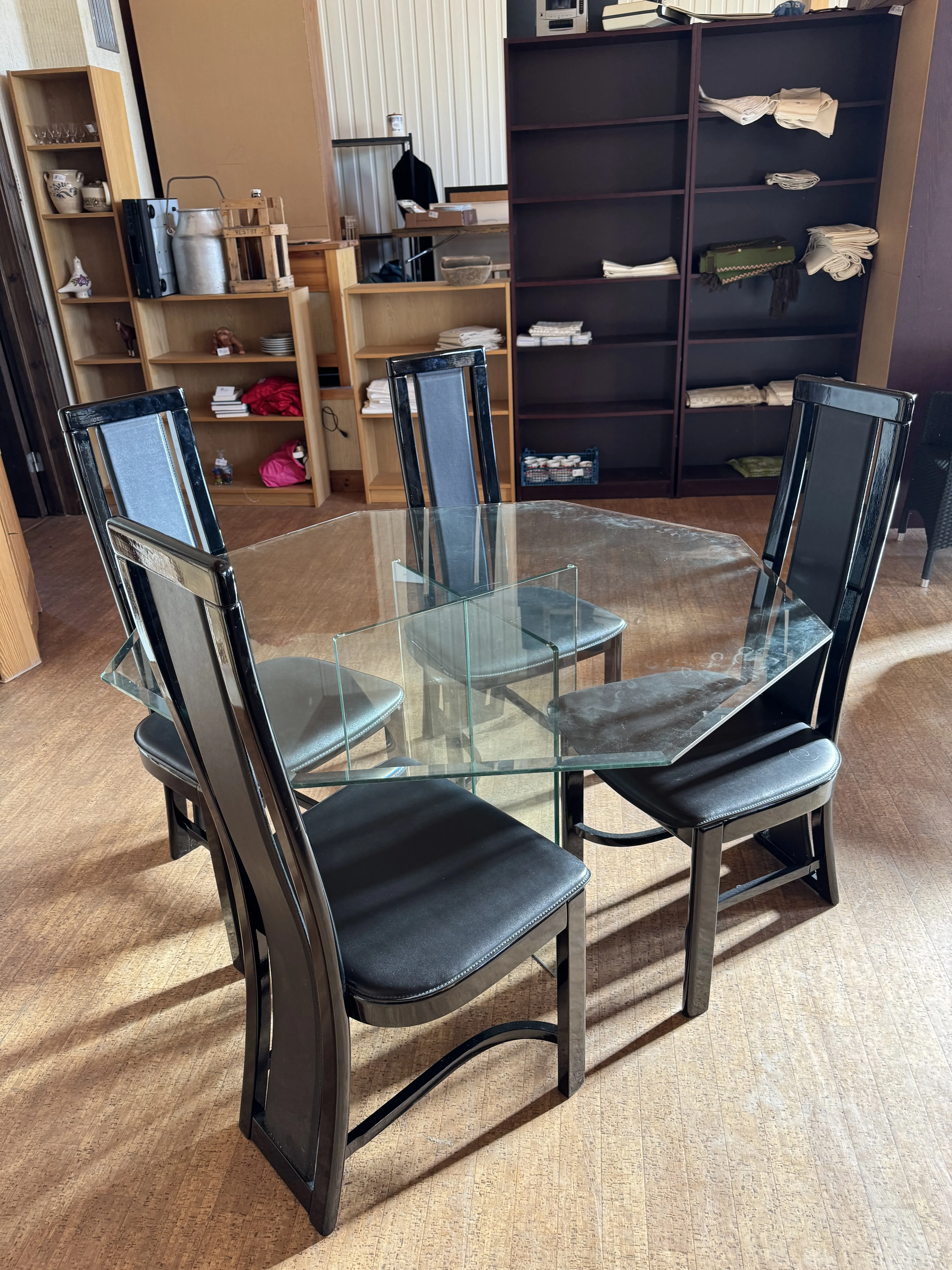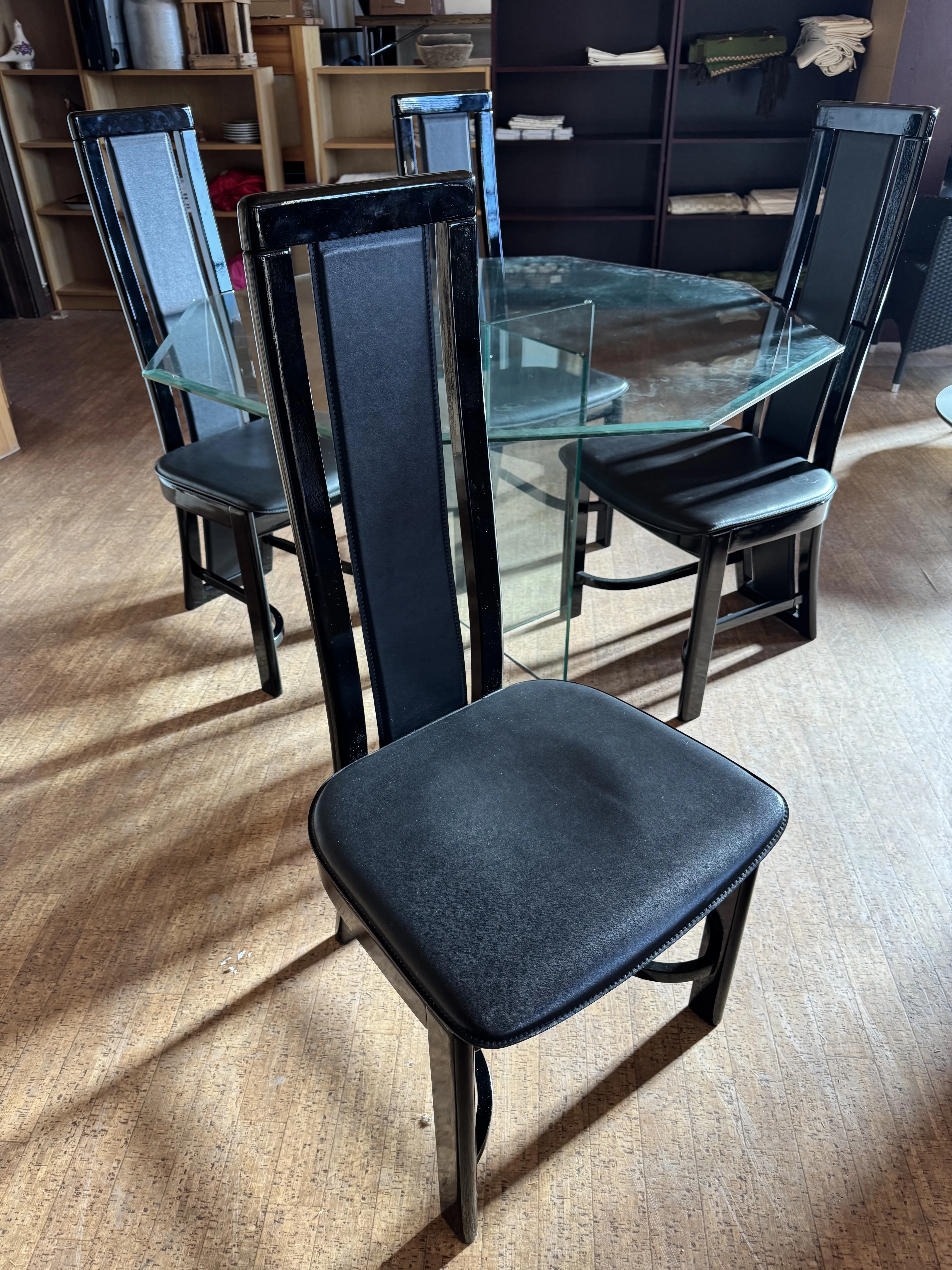 563. *Trädgårdsmöbel, bord + 4st stolar i konstrotting med dynor (bruksslitage) bord L.150cm B.90cm H.73cm