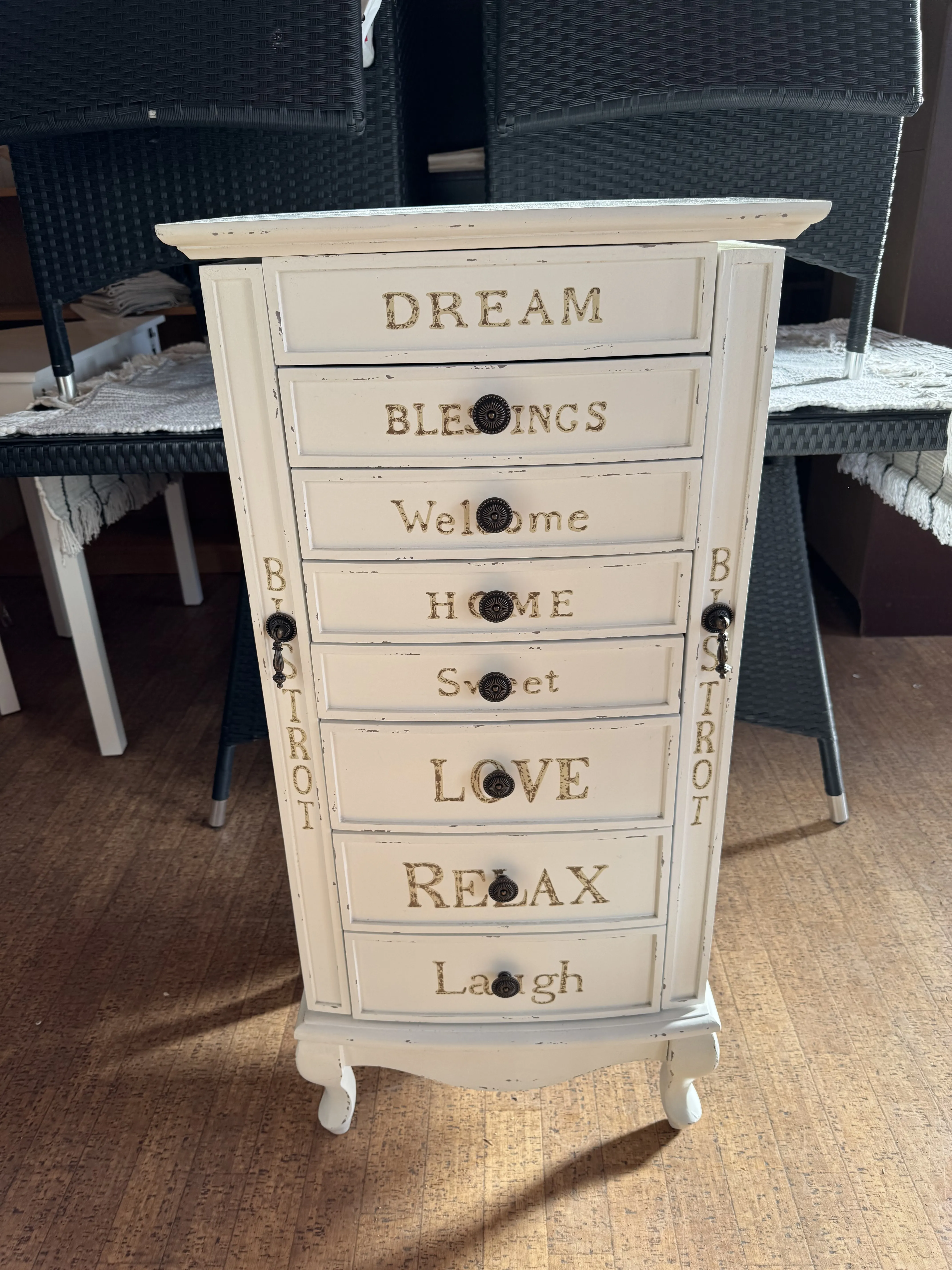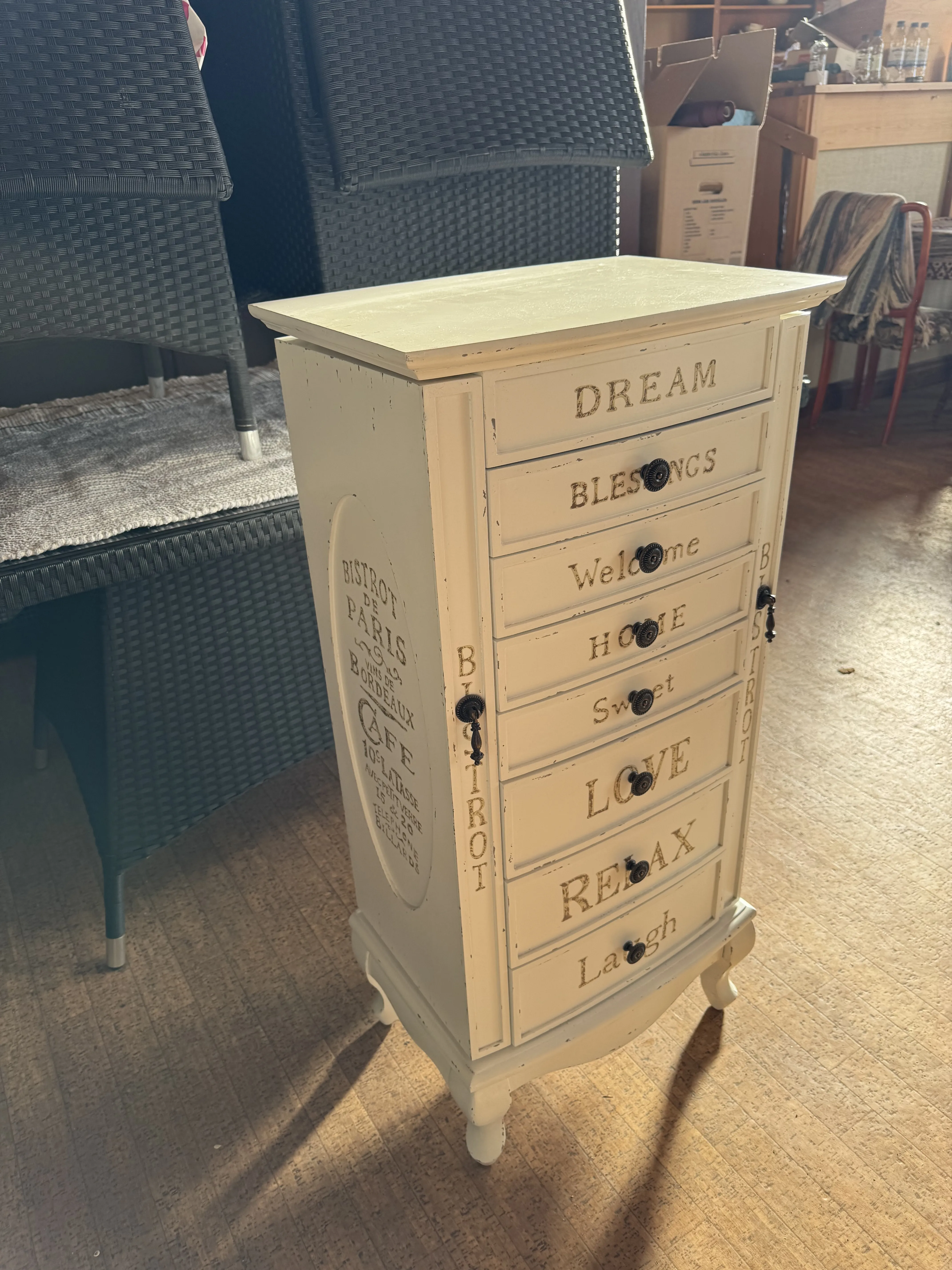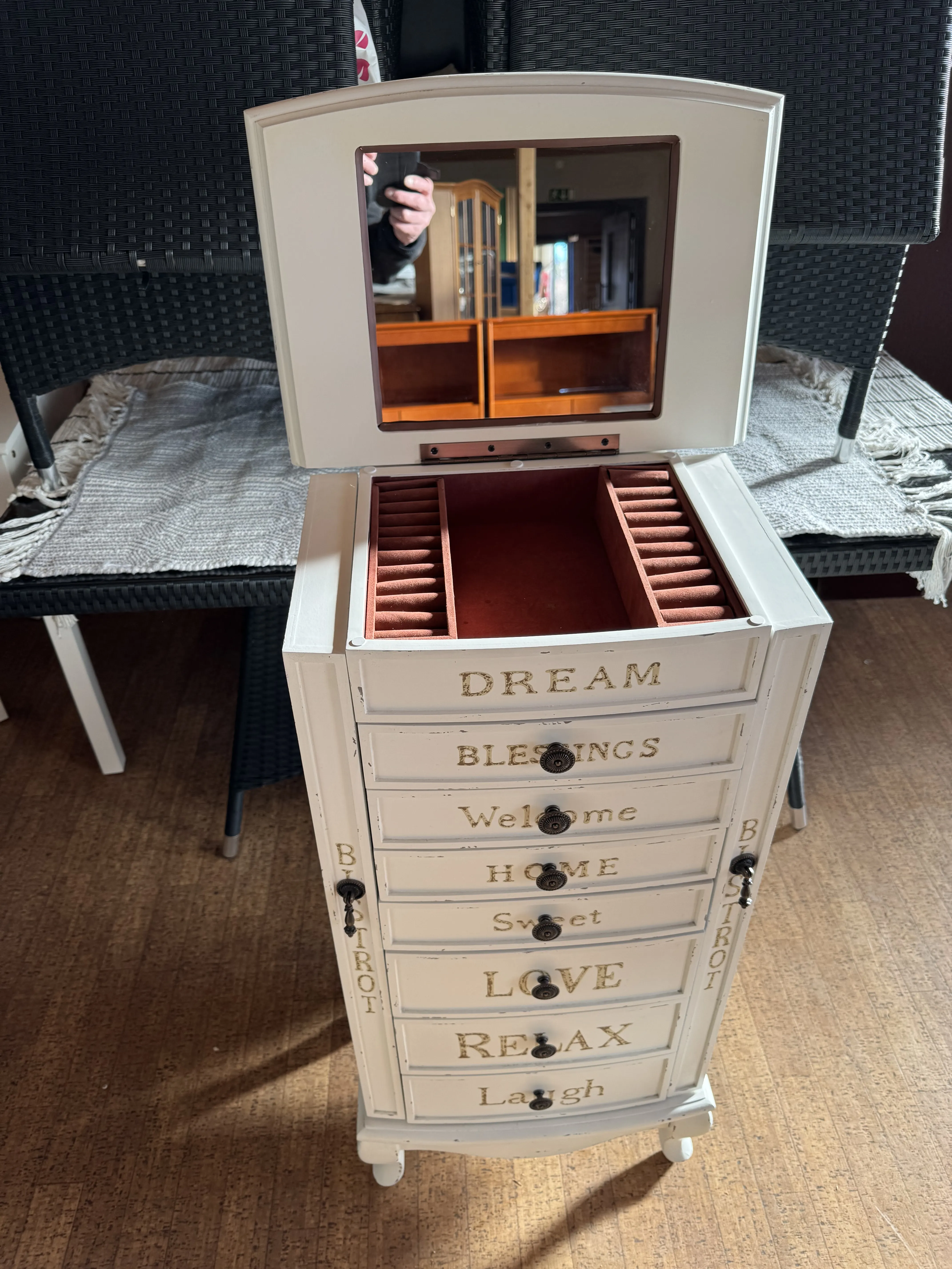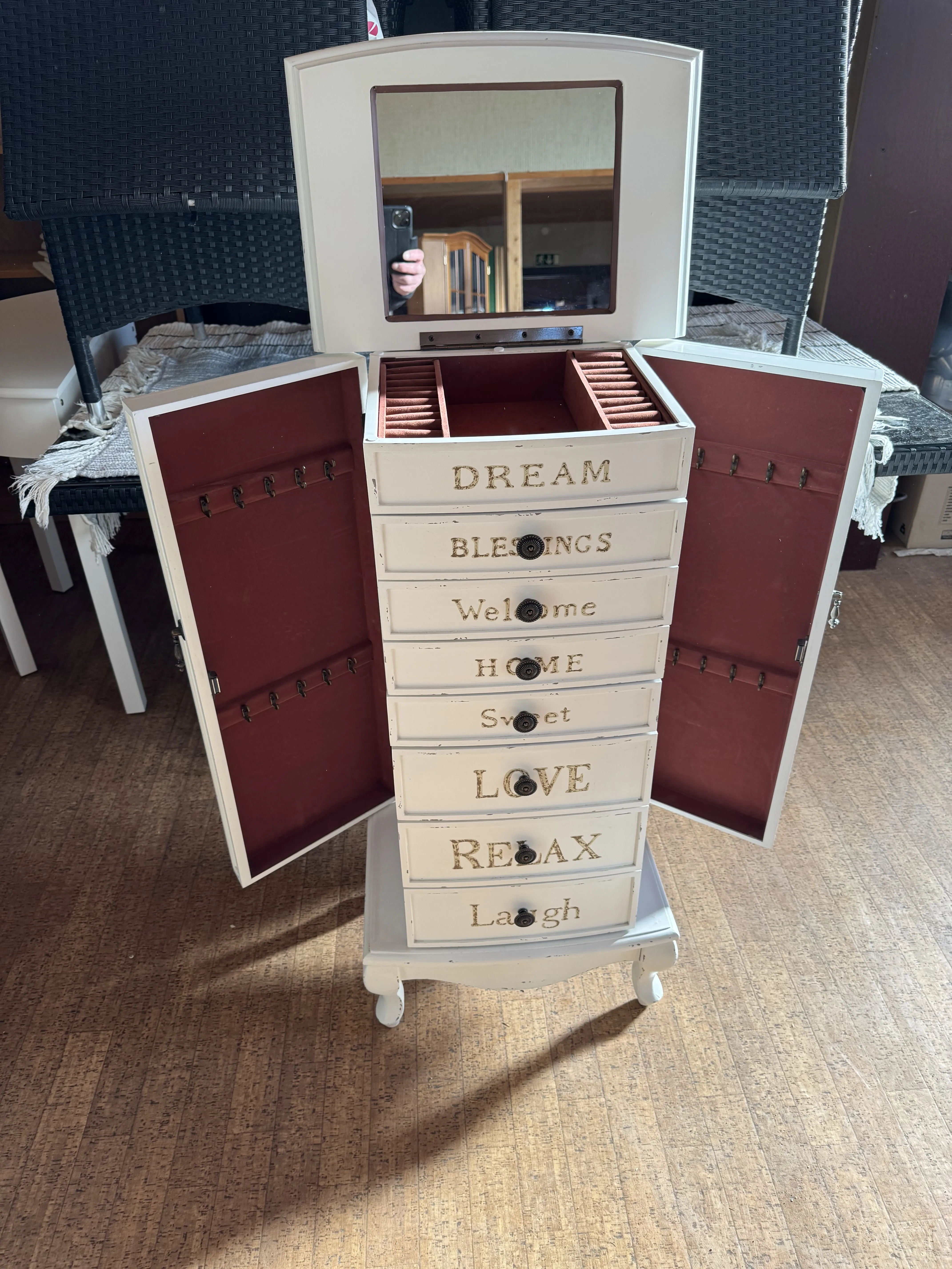 569. *Smyckesskåp H.97cm B.47cm Dj.36cm