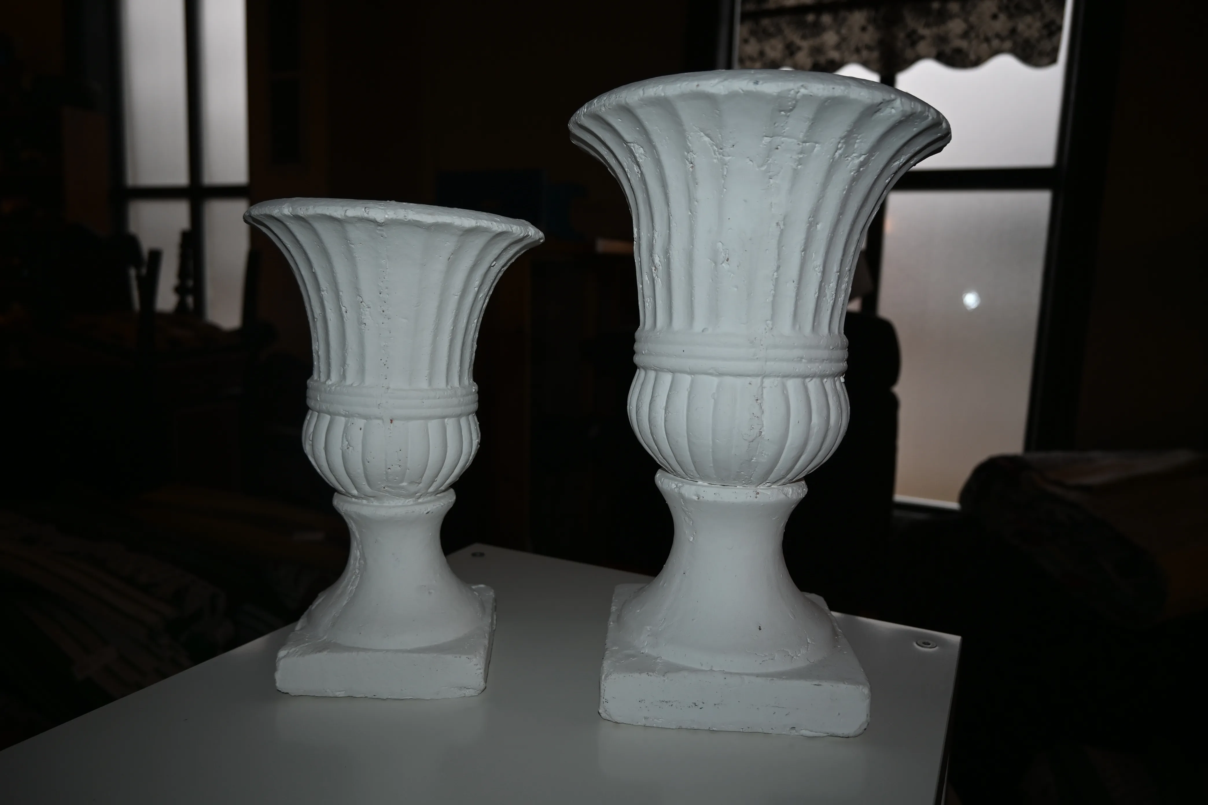 375. Pokalkrukor i konstmaterial 2st H.26cm & 31.5cm