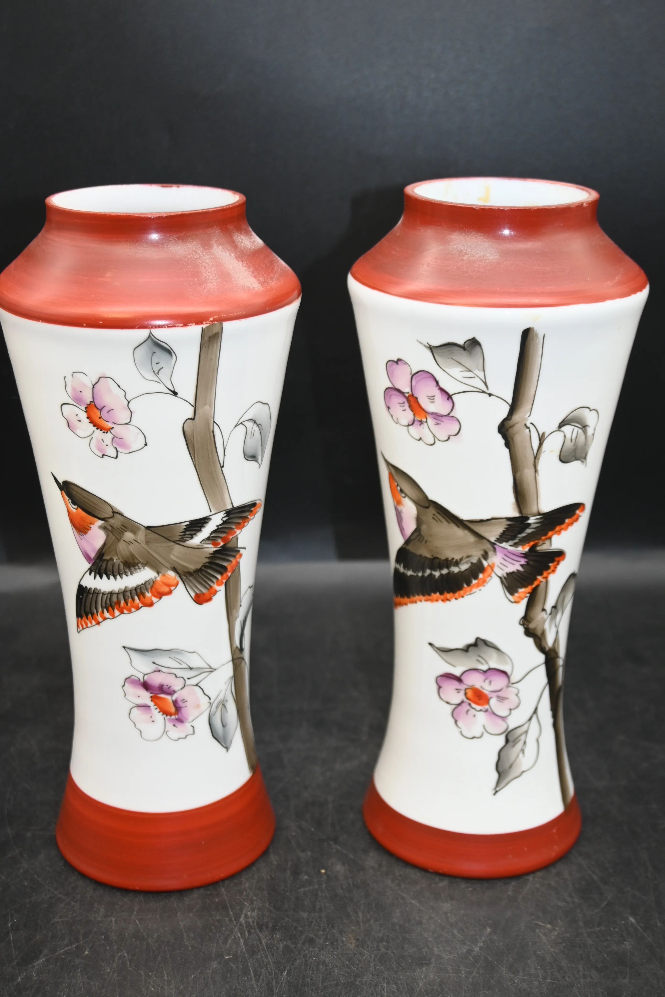 364. 1800-talets handmålade flussvaser ett par H:25 cm