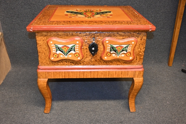 1800-tals kista med nyare benställning , senare bemålning, H.52cm L.57cm D.53cm