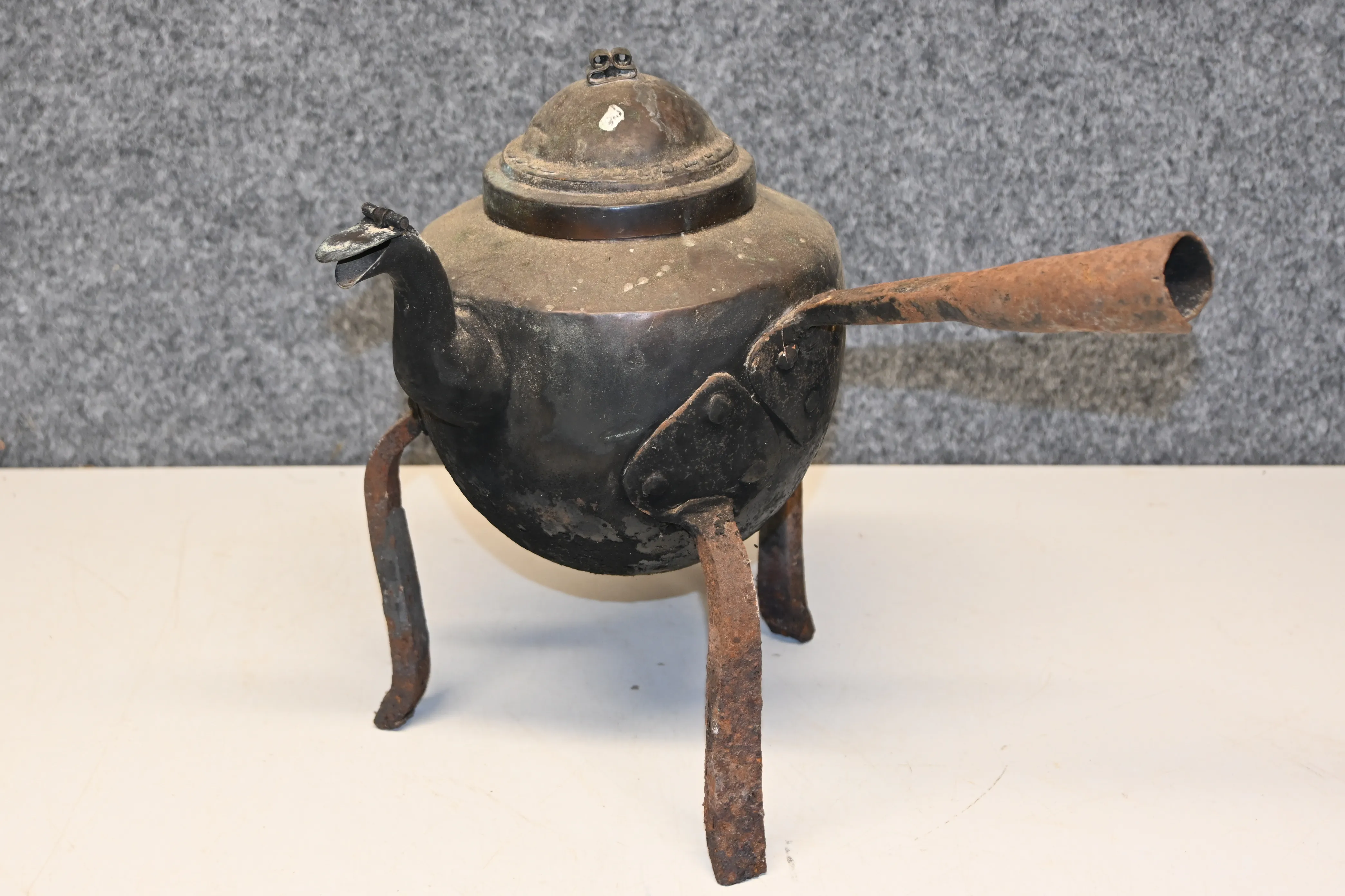 700. 1800.tals 3-bent skaftkokare i koppar H.30cm