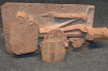 132. 3-bent gjutjärnsgryta (defekt botten), 2st gjutjärnsgrytor + lock