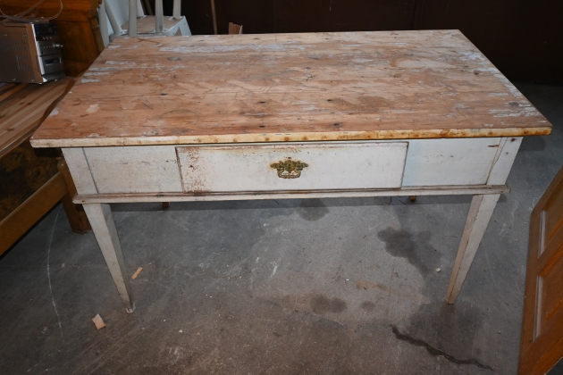 728. 1800.tals bord med låda L.130cm B.74cm H.76cm (åldersrelaterad slitage)