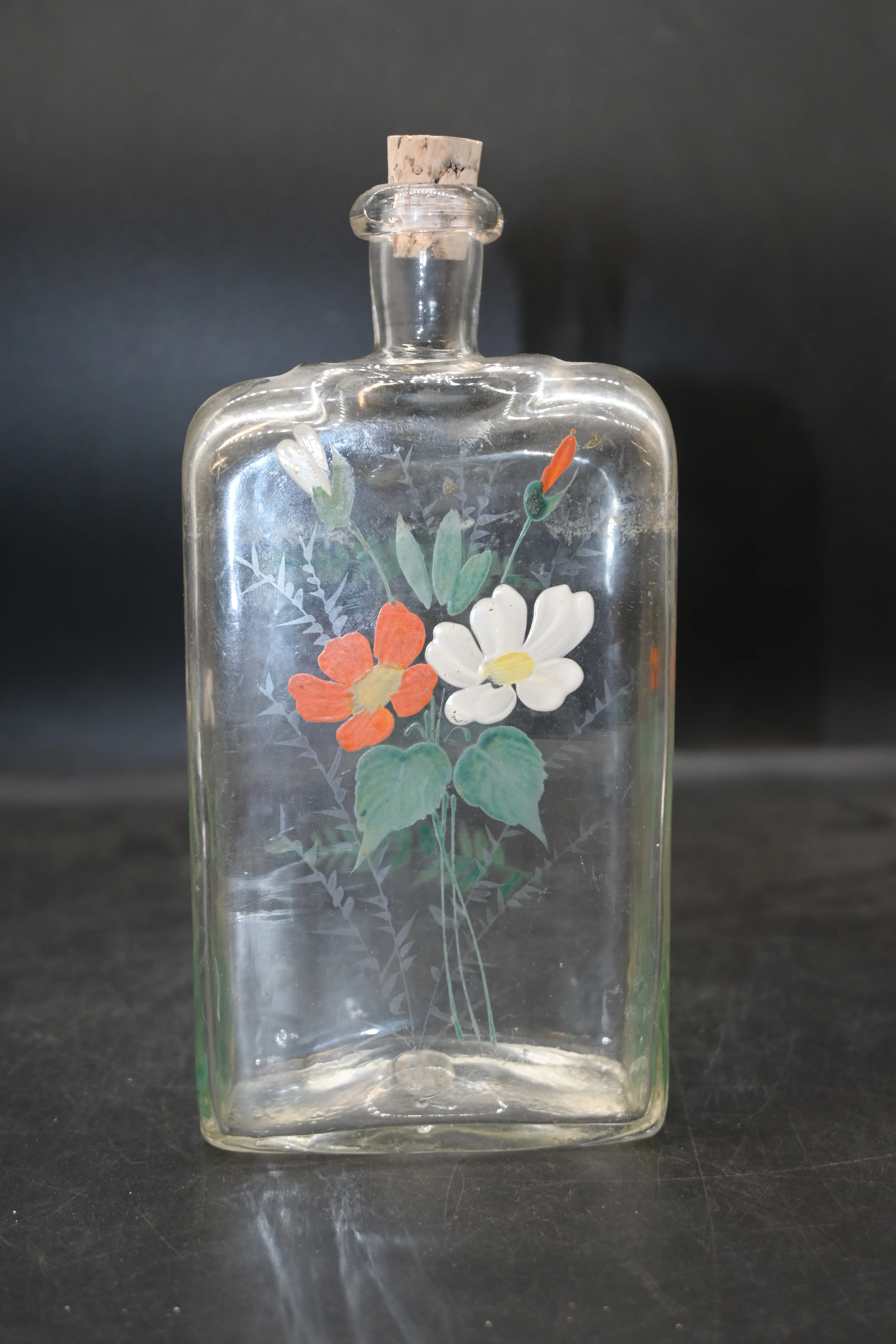 591. 1800.tals brännvinsflaska handmålad H.20cm