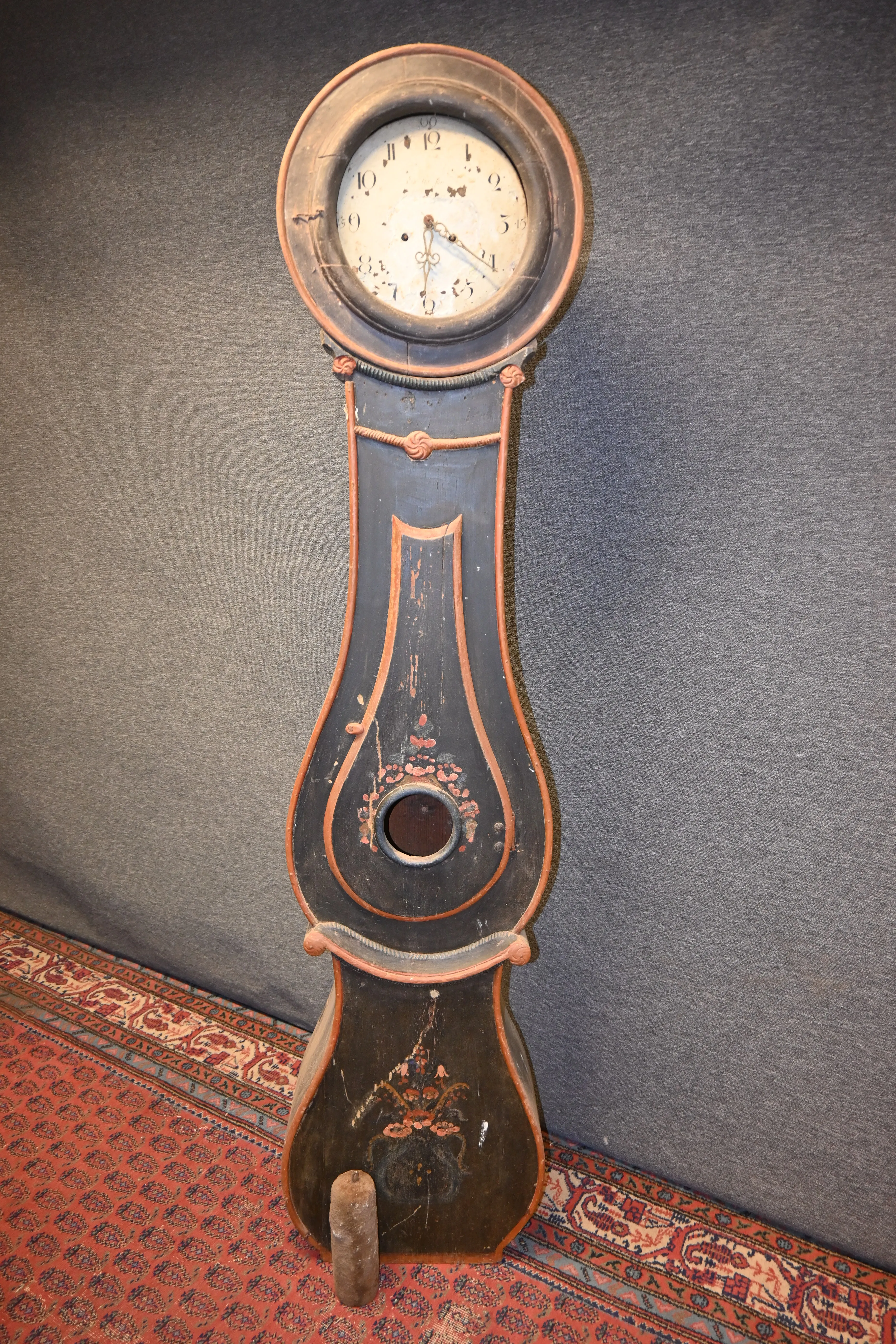 1800.tals frykdalsur med originalmålning (nyckel saknas, 1 lod saknas) H.203cm