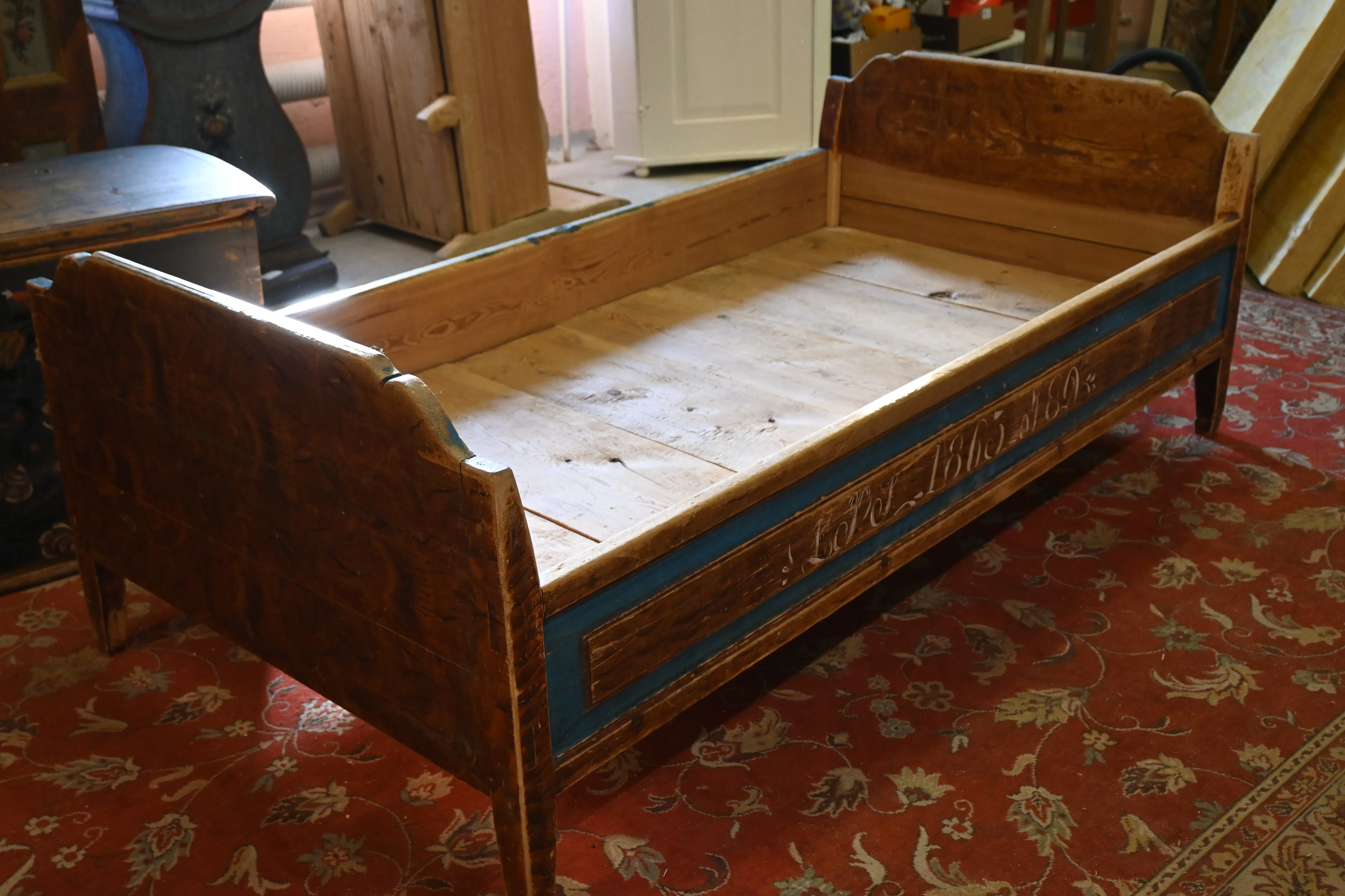362. 1800.tals knektsäng dat 1863, originalmålning L.178.5cm B.93cm H.63cm
