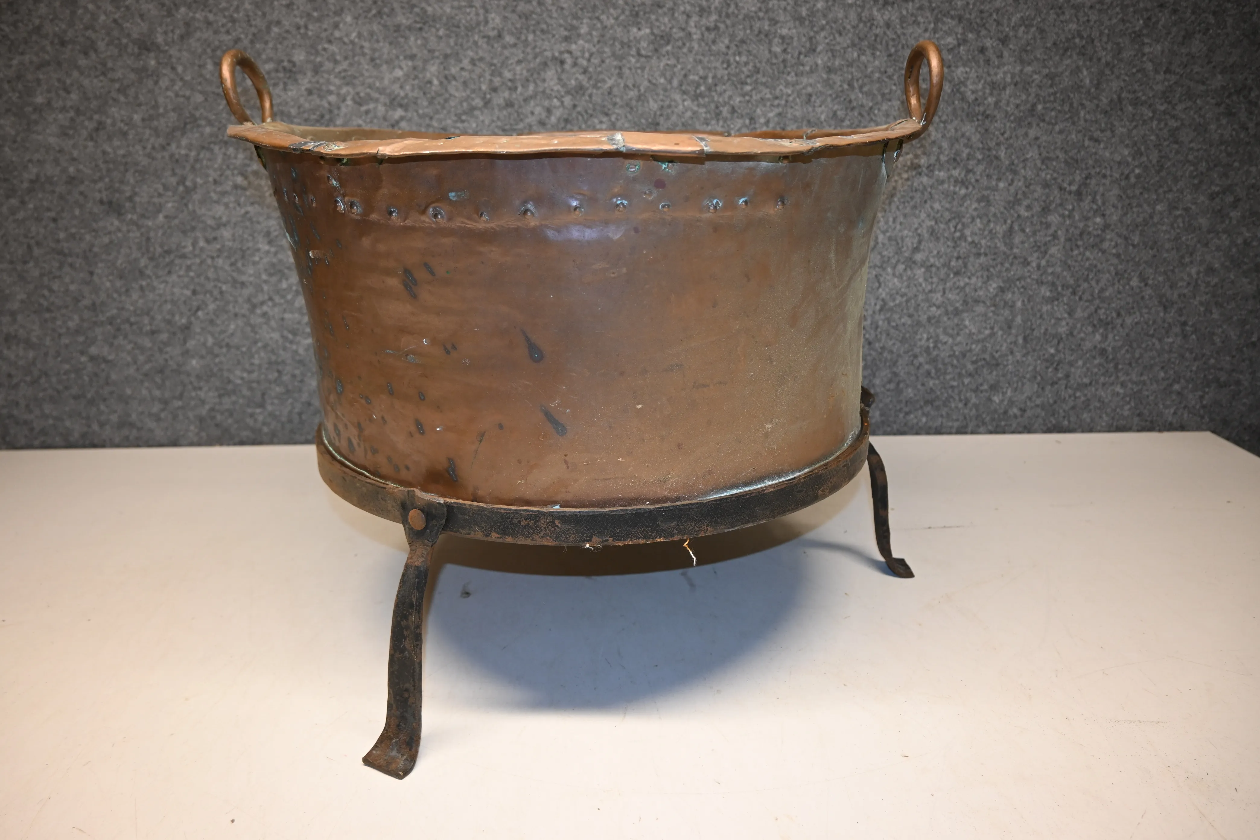 205. 1800.tals kopparkittel på smidesstativ D.53cm H.42cm