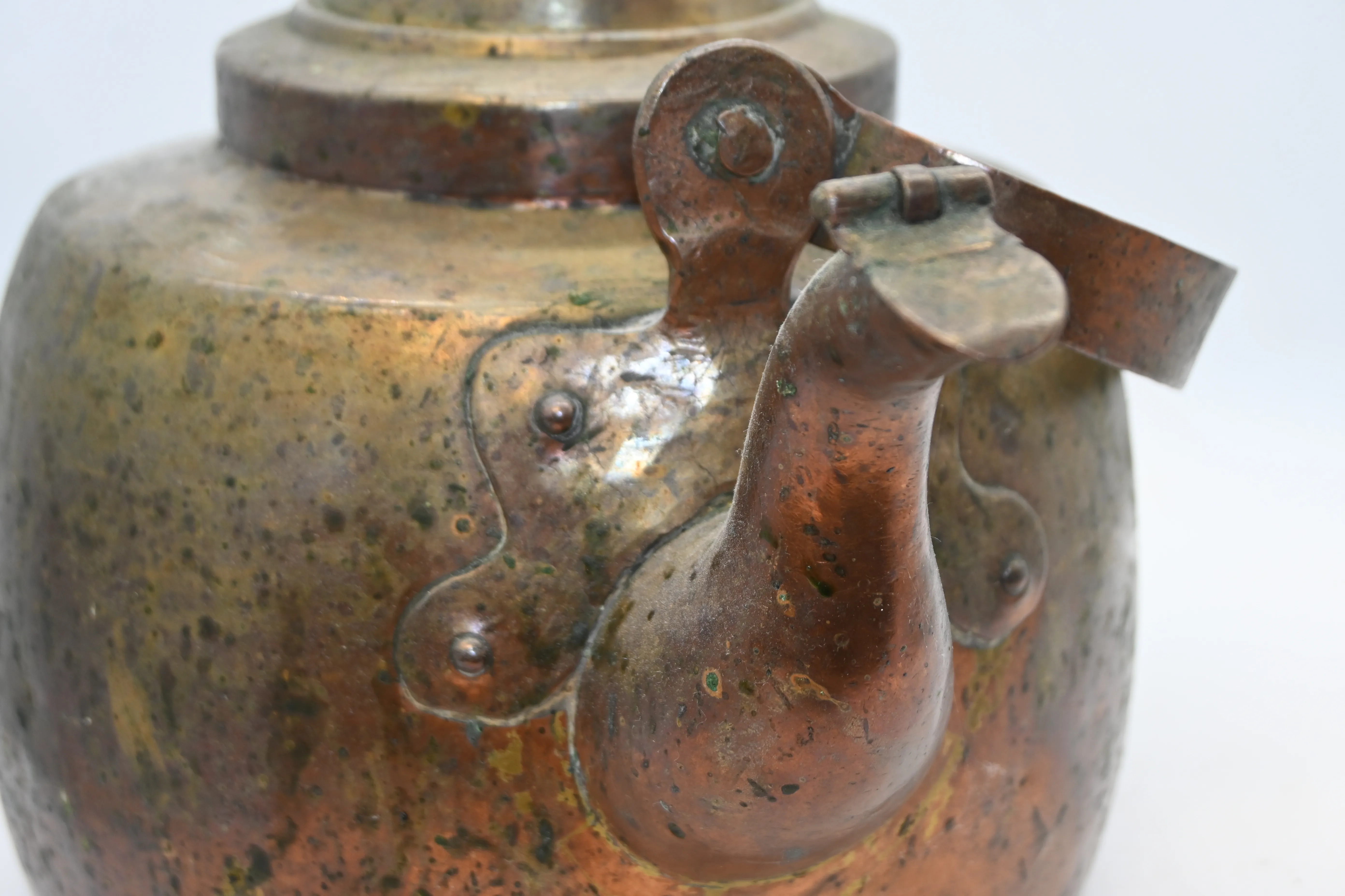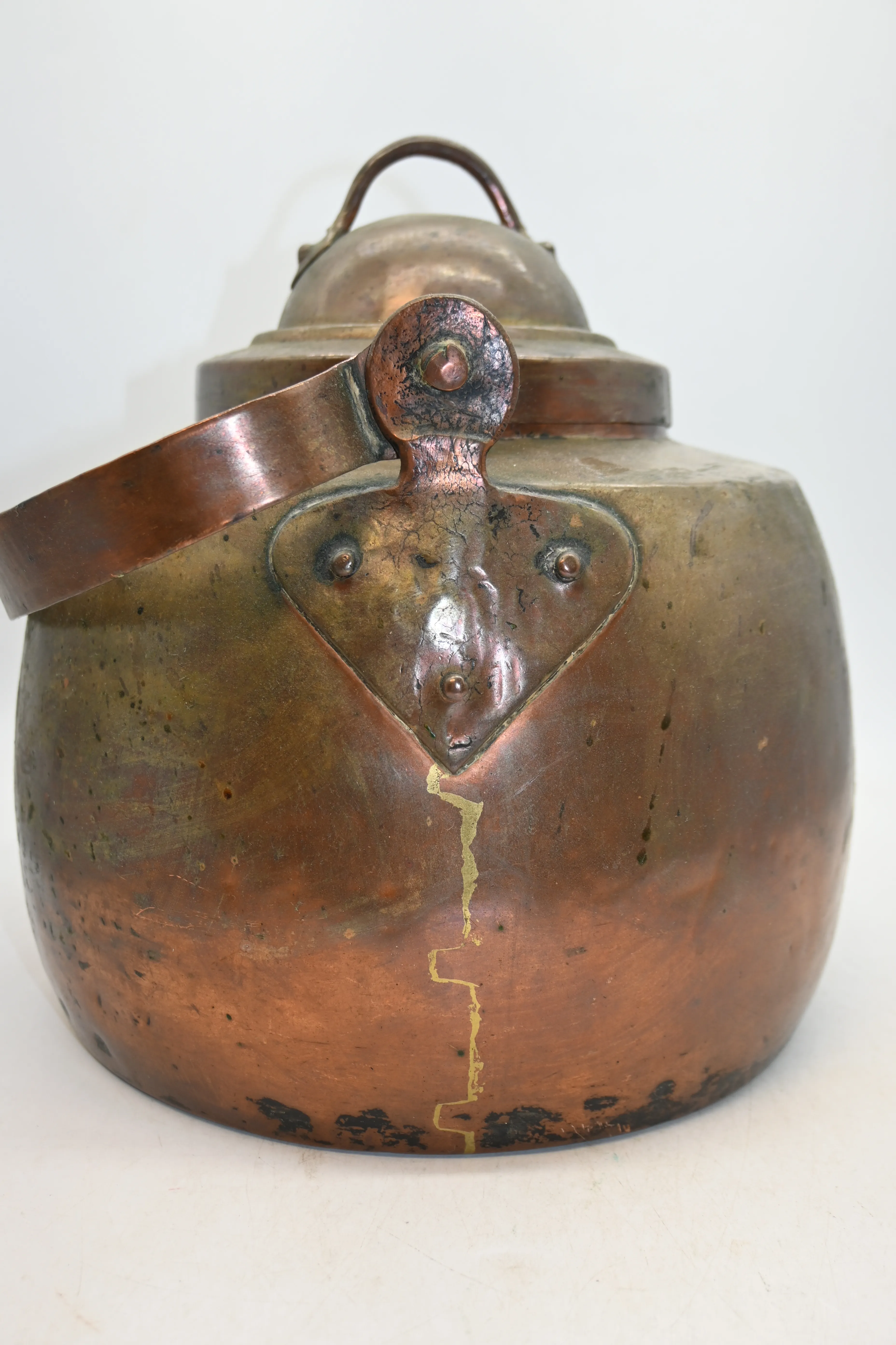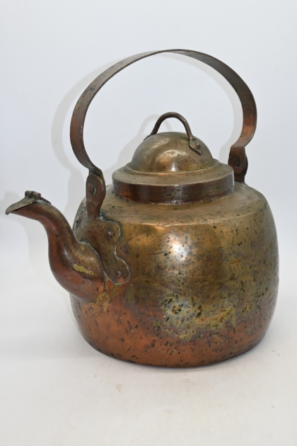 191. 1800.tals mustaschkokare i koppar H.34cm ink handtag D.25cm (stor modell)