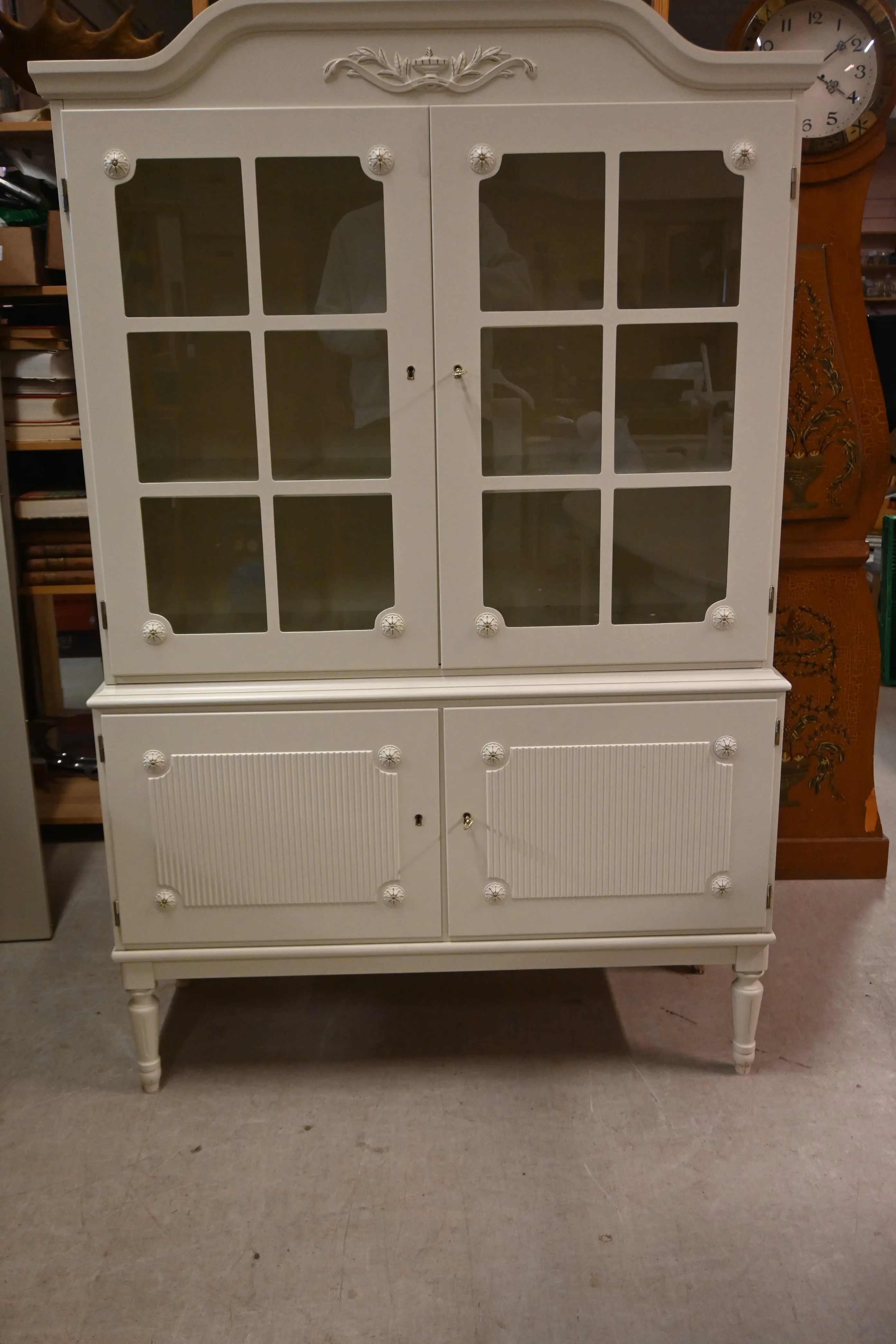 473. 2-delat golvvitrinskåp i Gustaviansk stil B.110cm H.174cm Dj.43cm