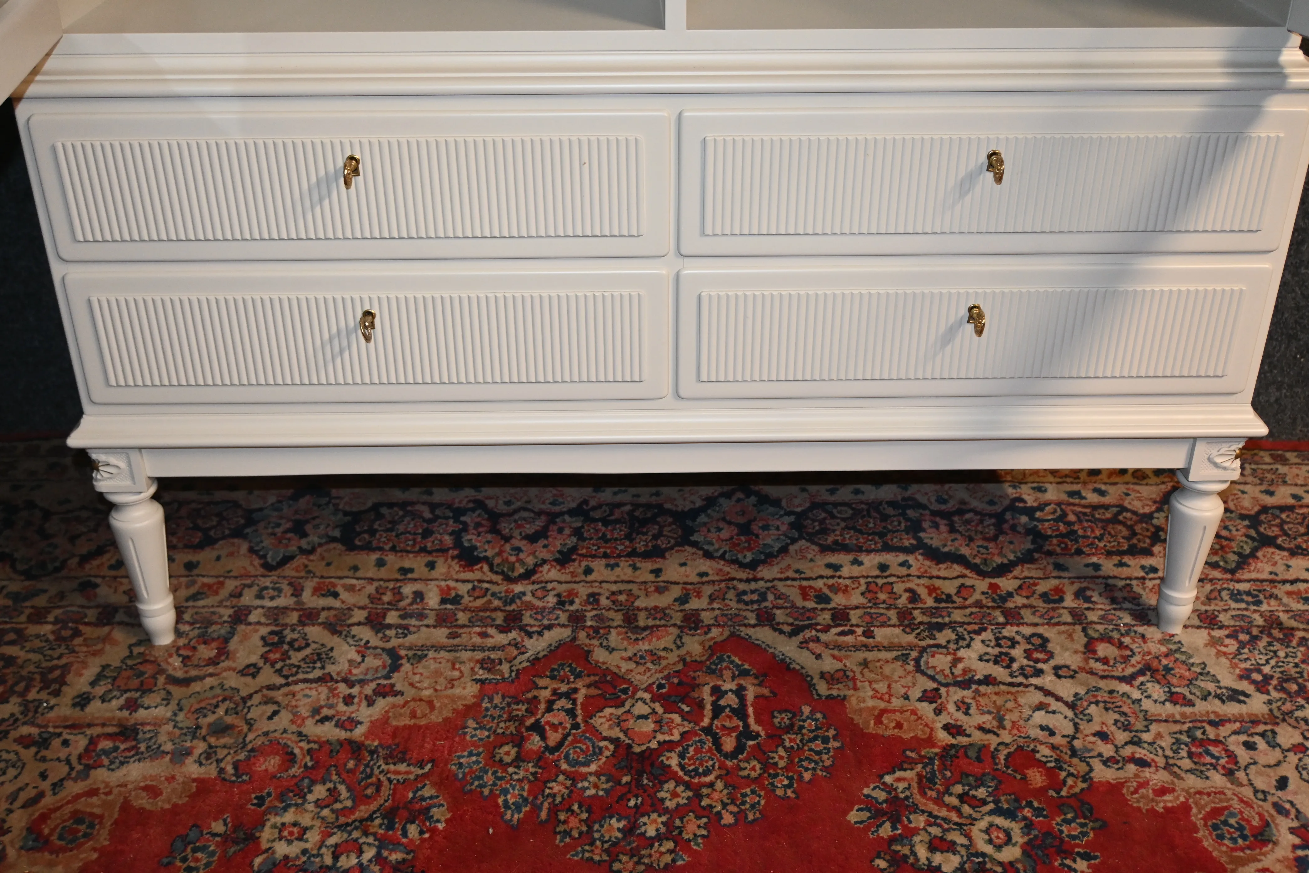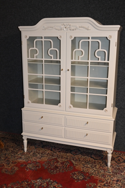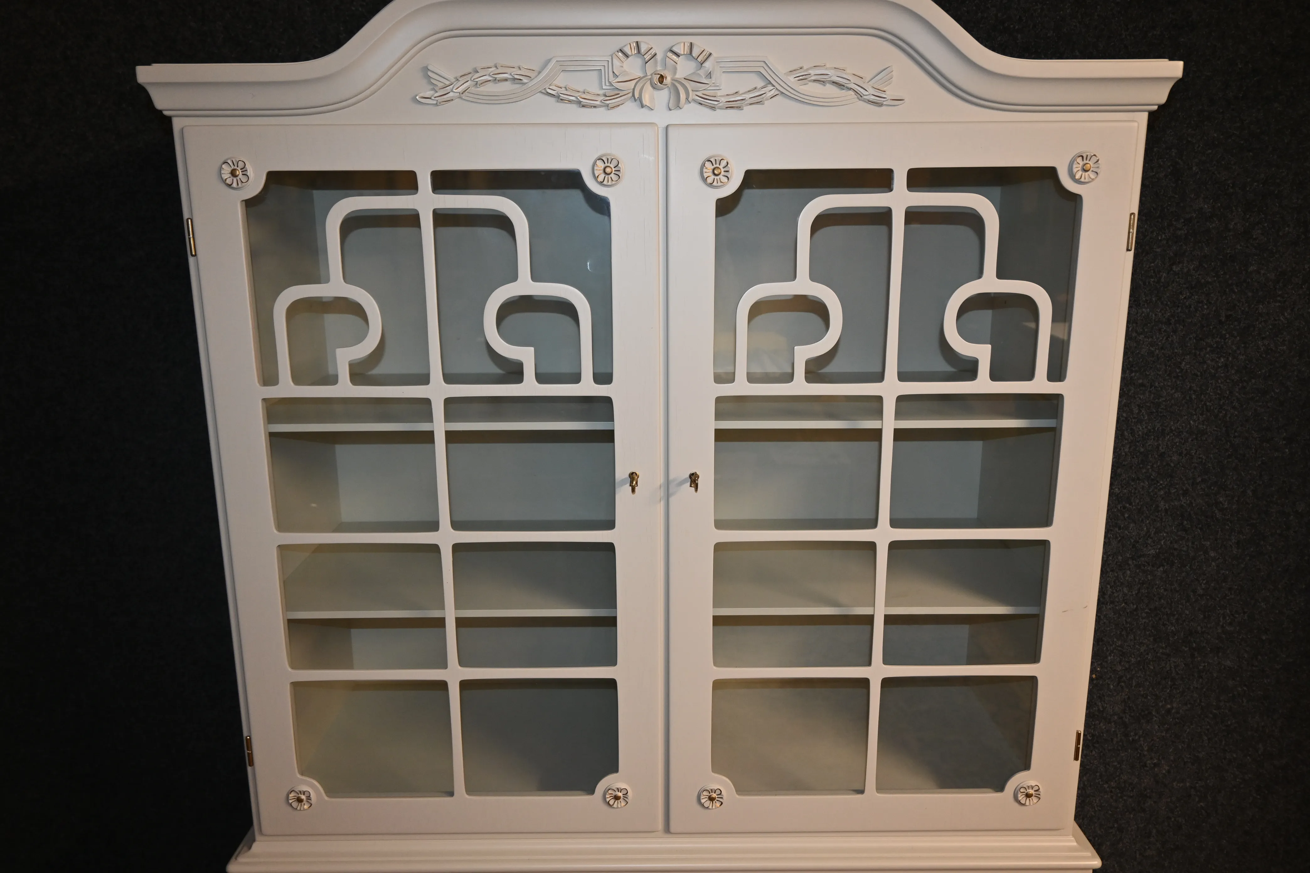 101. 2-delat vitrinskåp i Gustaviansk stil, 6st nycklar H.173.5cm B.117cm Dj.45cm (krackelering i färg på överdelen)