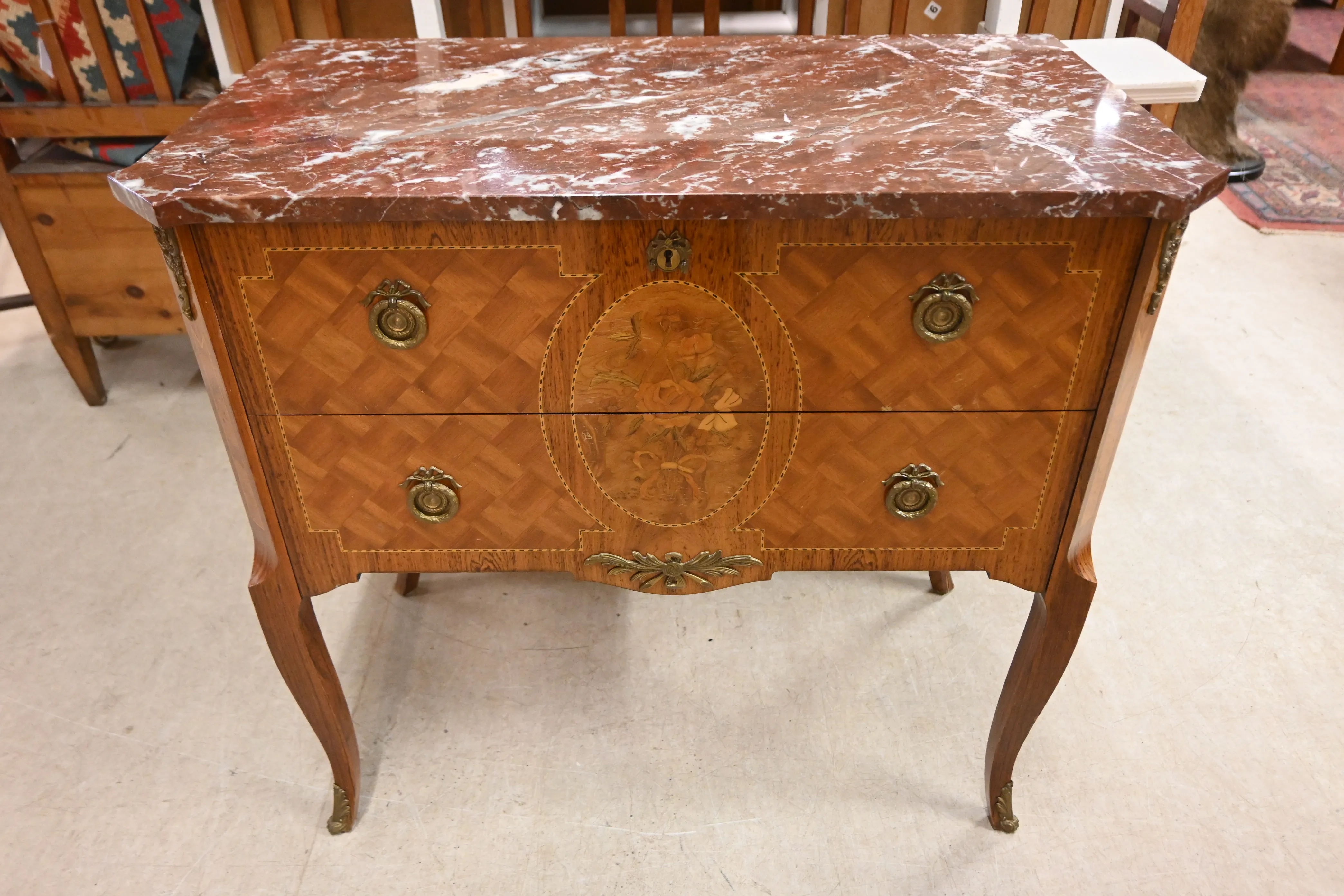 645. 2L stilbyrå m marmorskiva H.74cm B.80cm Dj.44cm