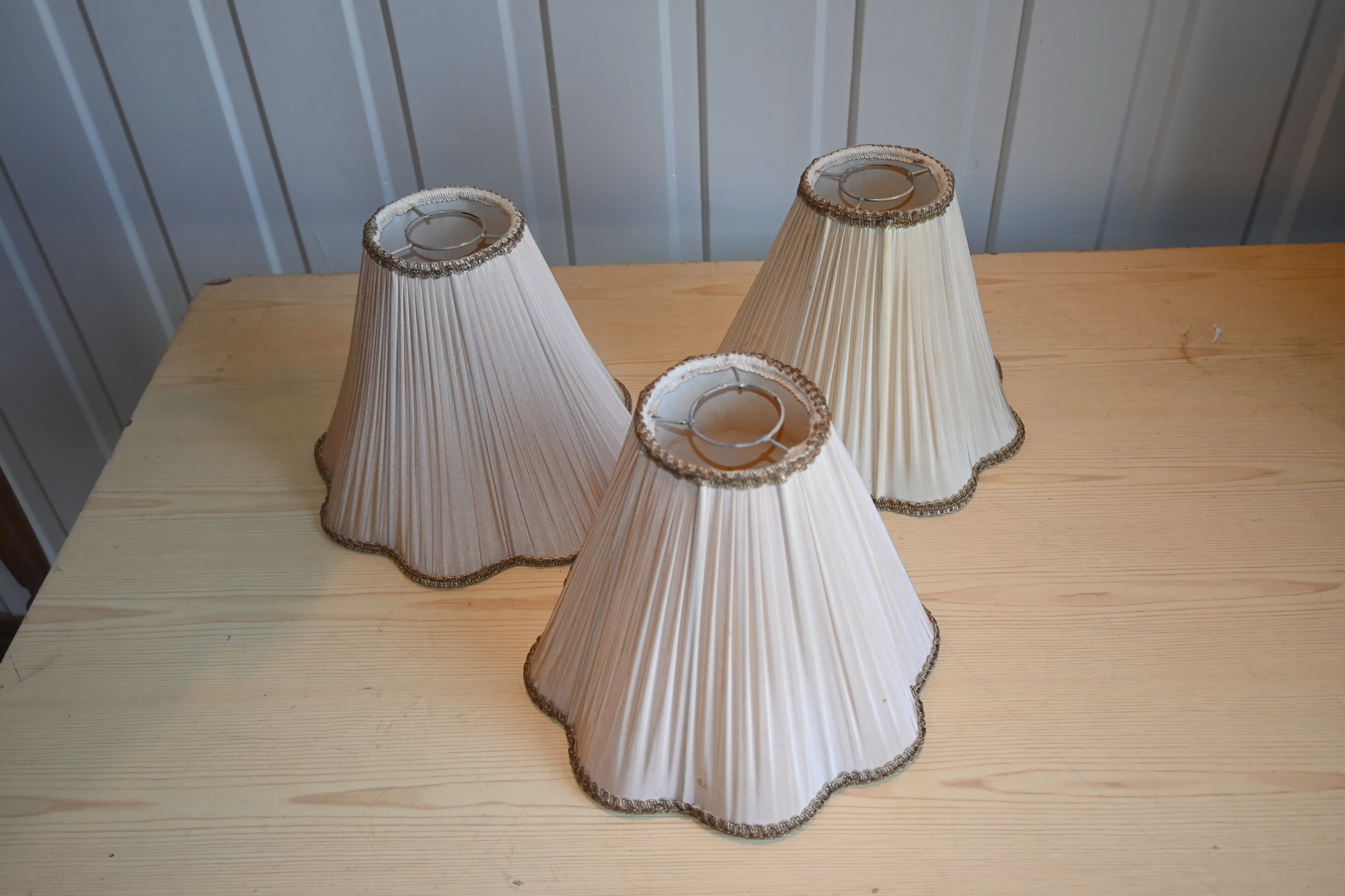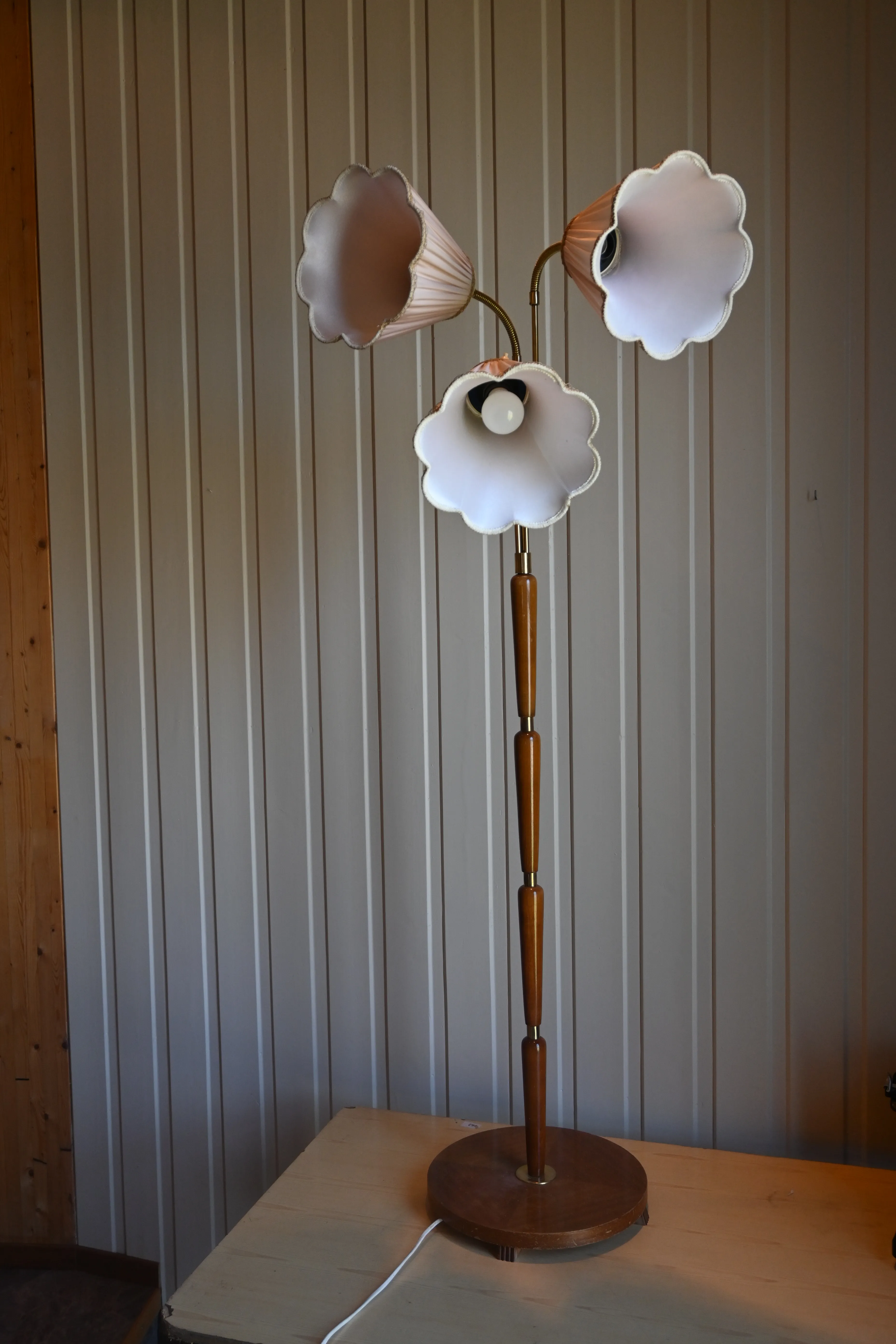 352. 3-armad golvlampa 1900.talets mitt H.156cm (original skärmar medföljer) bruksslitage
