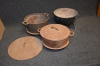 3-bent gjutjärnsgryta (defekt botten), 2st gjutjärnsgrytor + lock