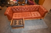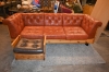 429. 3-sits soffa i skinn & furu "Party" Ekornäs + fotpall 1970/80-tal L.221cm H.72cm