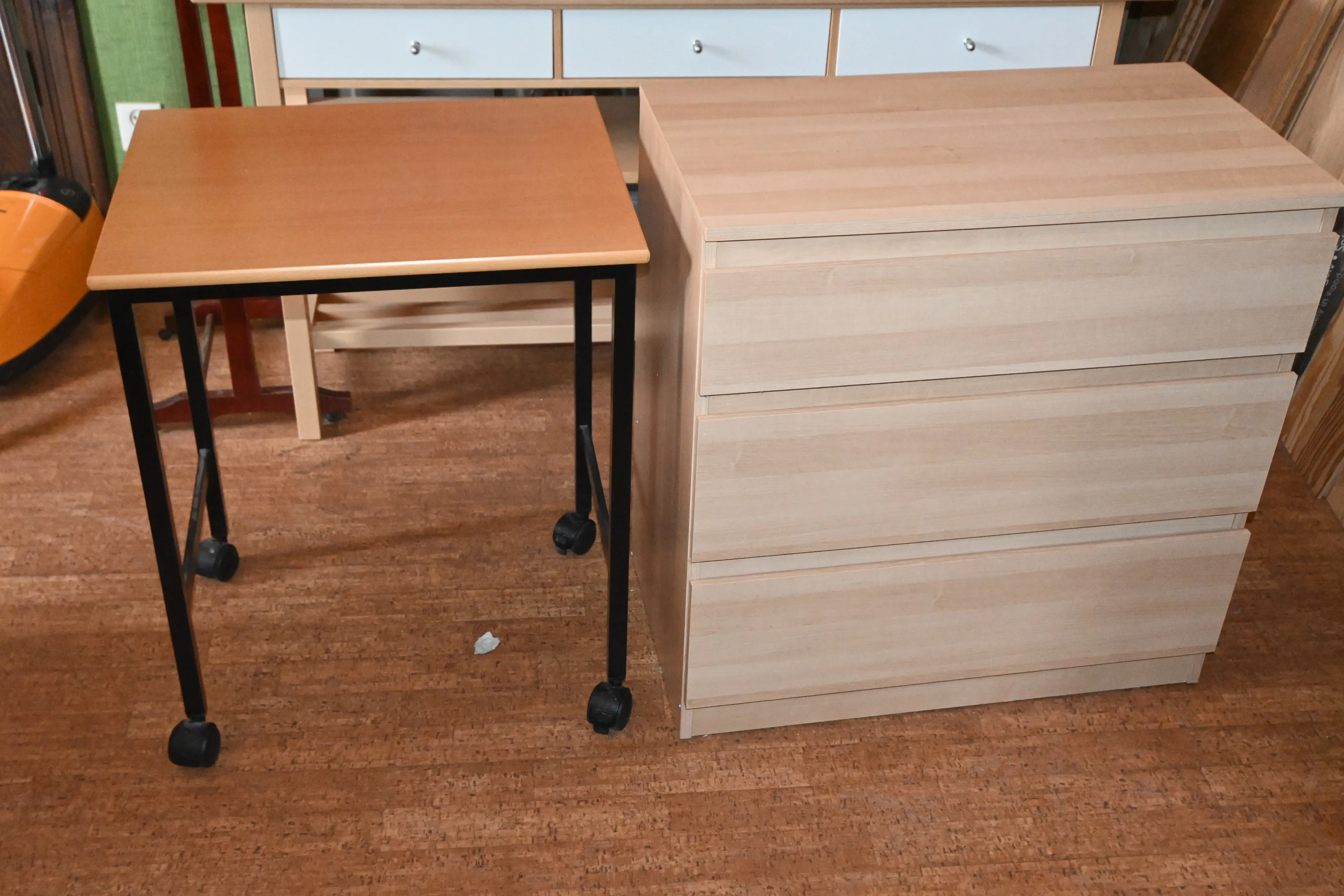 3L byrå (bruksslitage) H.71cm B.70cm Dj.40cm + laptopbord H.68cm 44x55cm