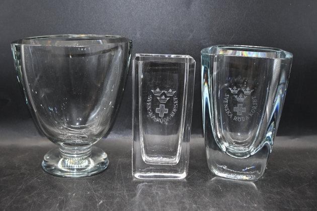 3st Vaser i kristall Svenska Röda Korset H=15 och 17cm
