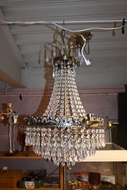559. 5-armad kristallampa H.60cm D.40cm (ngn prisma saknas)