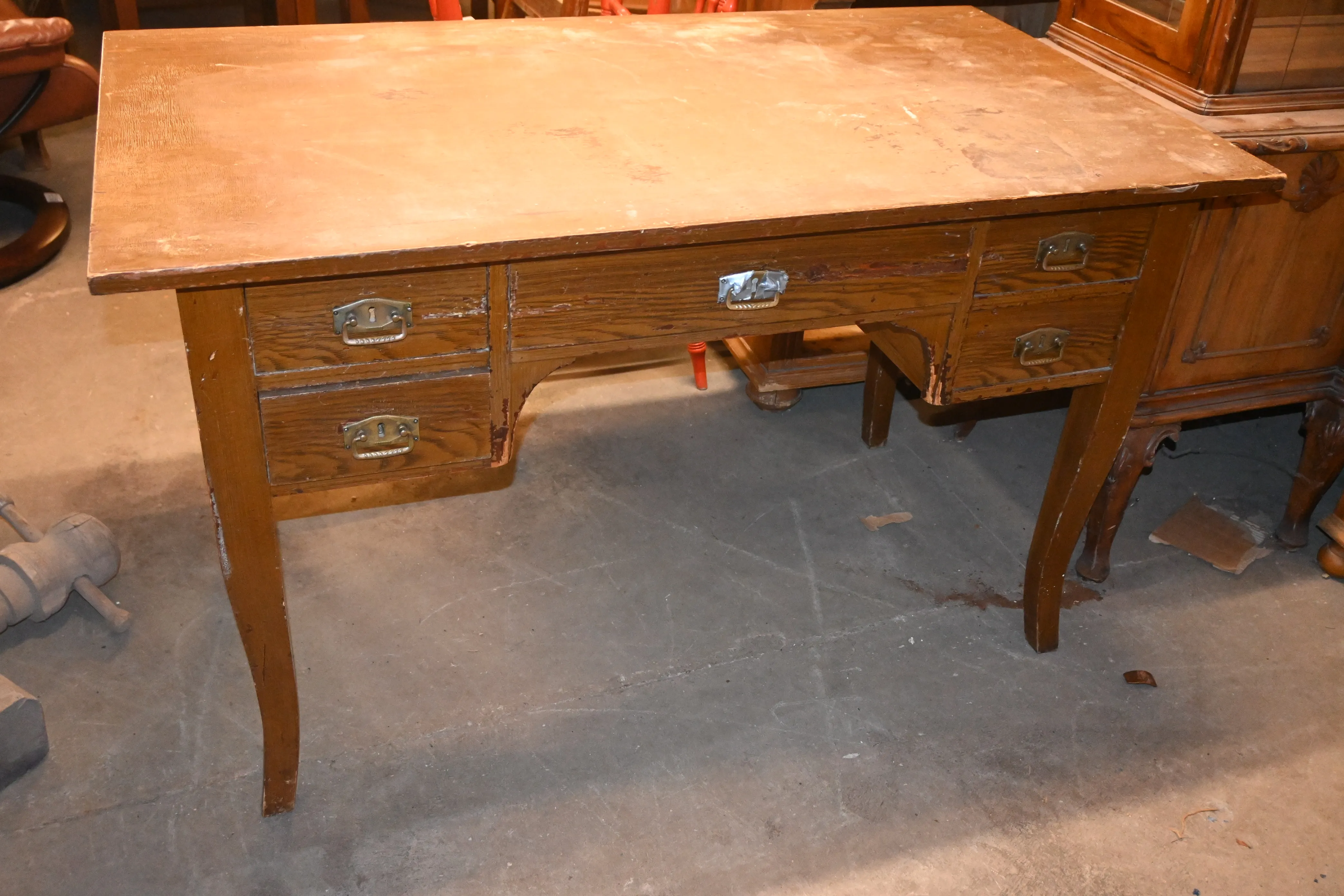 738. 5L skrivbord 1900.talets första del L.124cm H.75cm B.72cm (slitage)