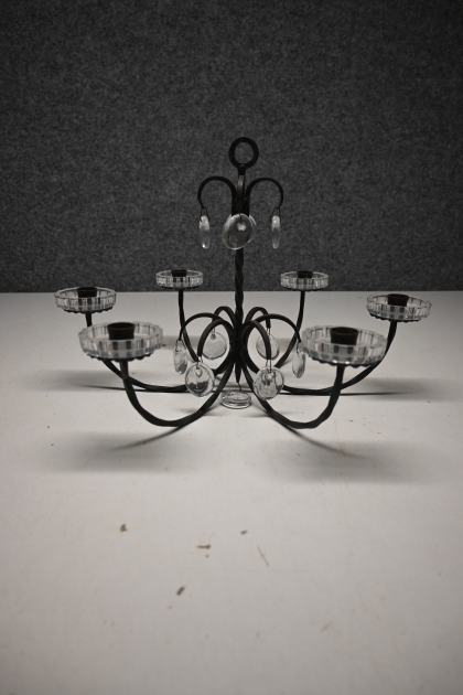 6 arm ljuskrona i smide o glas, D. 45cm H.32cm