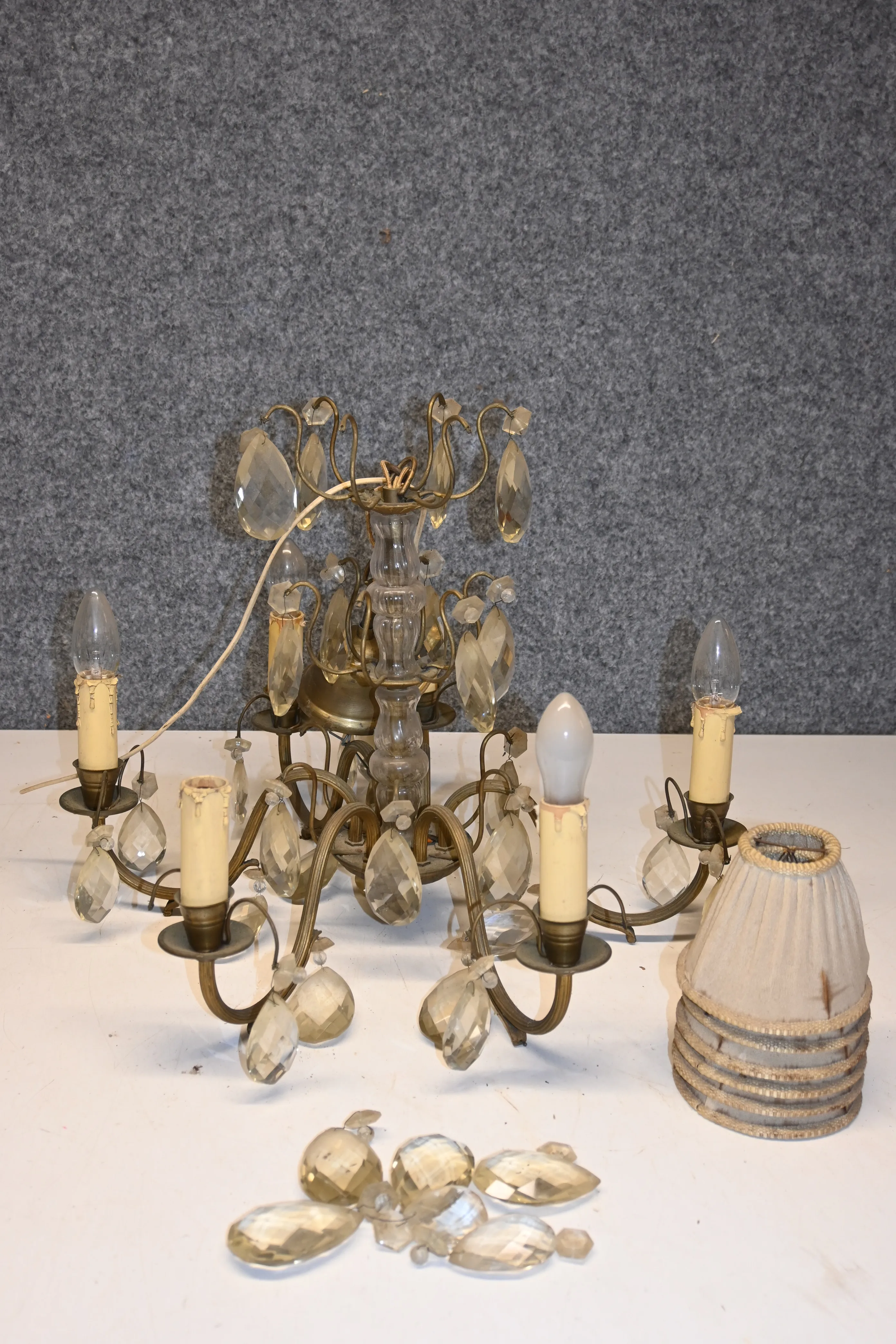 6-armad kristallkrona i barock stil (renoveringsobjekt, ngn prisma saknas)