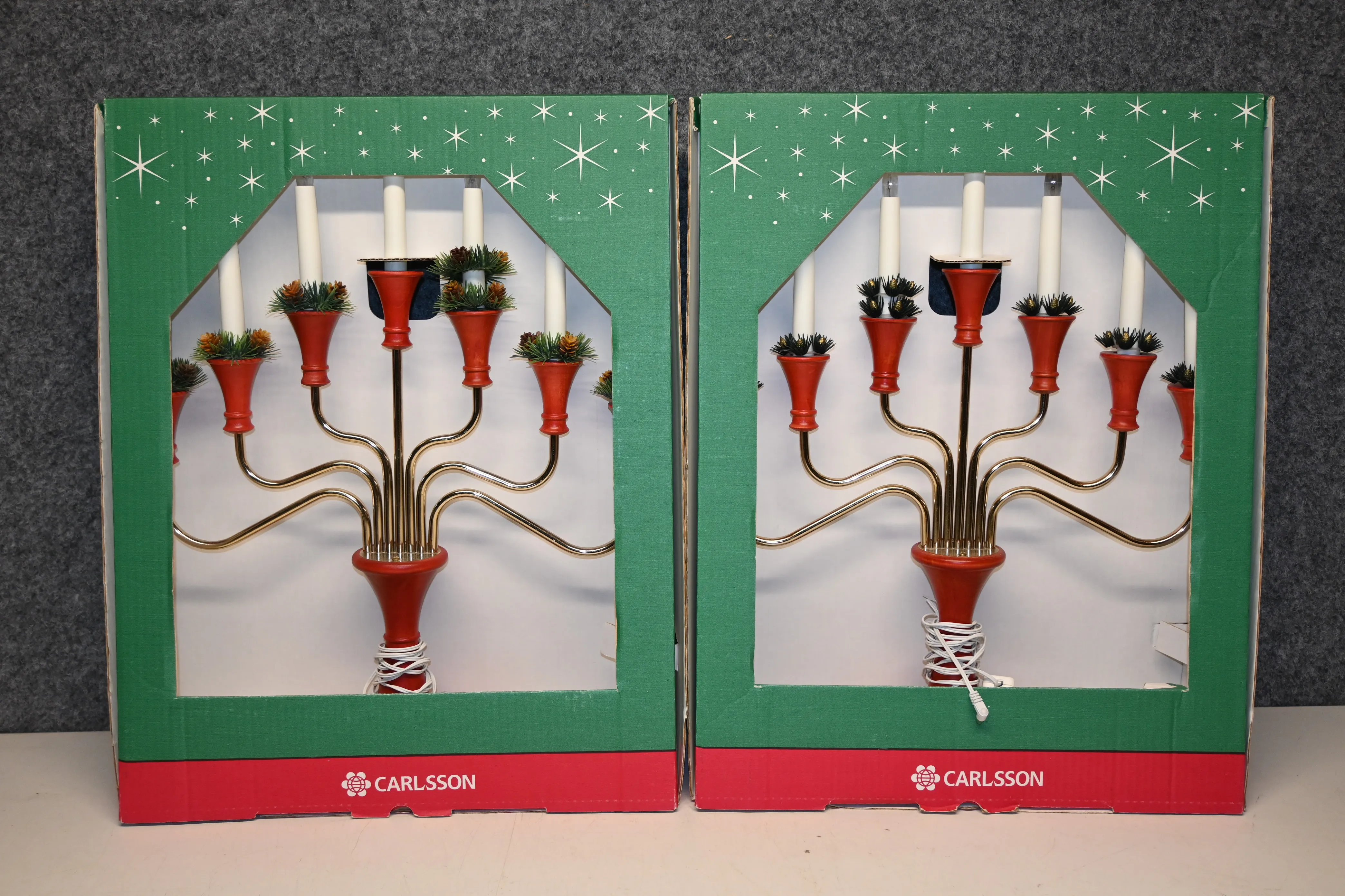 262. Adventsljusstakar 2st, Carlsson "Gnosjö" i trä & mässing H.55cm (adapter saknas)