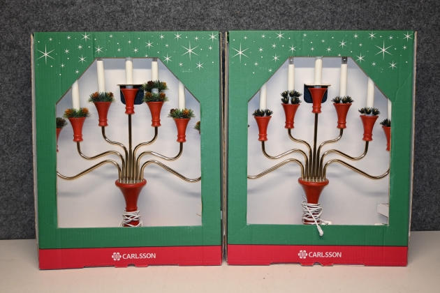 Adventsljusstakar 2st, Carlsson "Gnosjö" i trä & mässing H.55cm (adapter saknas)