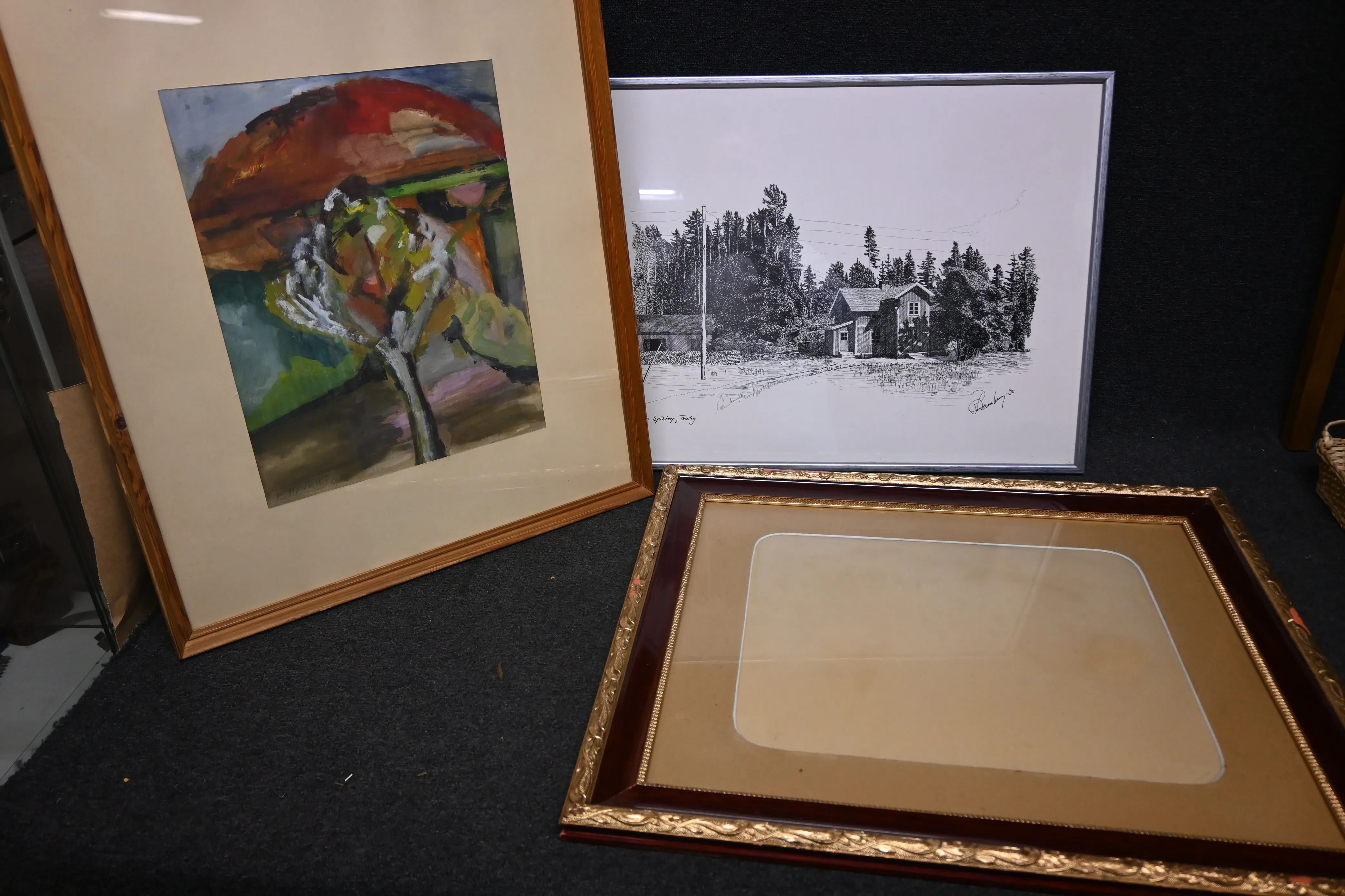 Akvarell B.Henriett + Spiktorp i Torsby + äldre ram 65x55cm