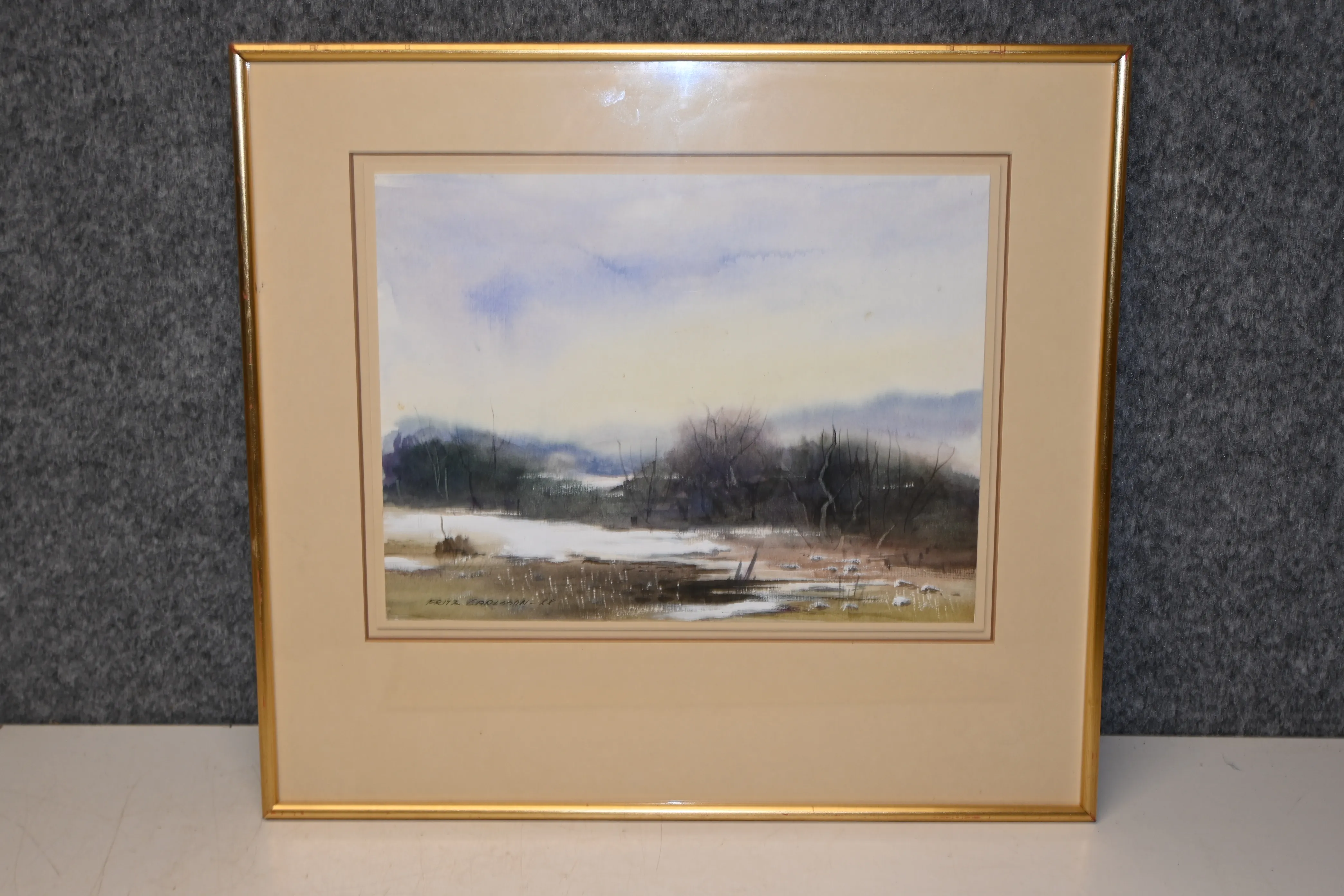 Akvarell "Snäsmältning, Gustavsvik-88" av Fritz Carlsson (Kristinehamn) mmr.49x45cm