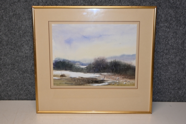 395. Akvarell "Snäsmältning, Gustavsvik-88" av Fritz Carlsson (Kristinehamn) mmr.49x45cm
