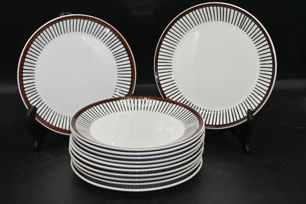 338. Assietter 12st, Gustavsberg "Spisa Ribb" av Stig Lindberg D.17cm