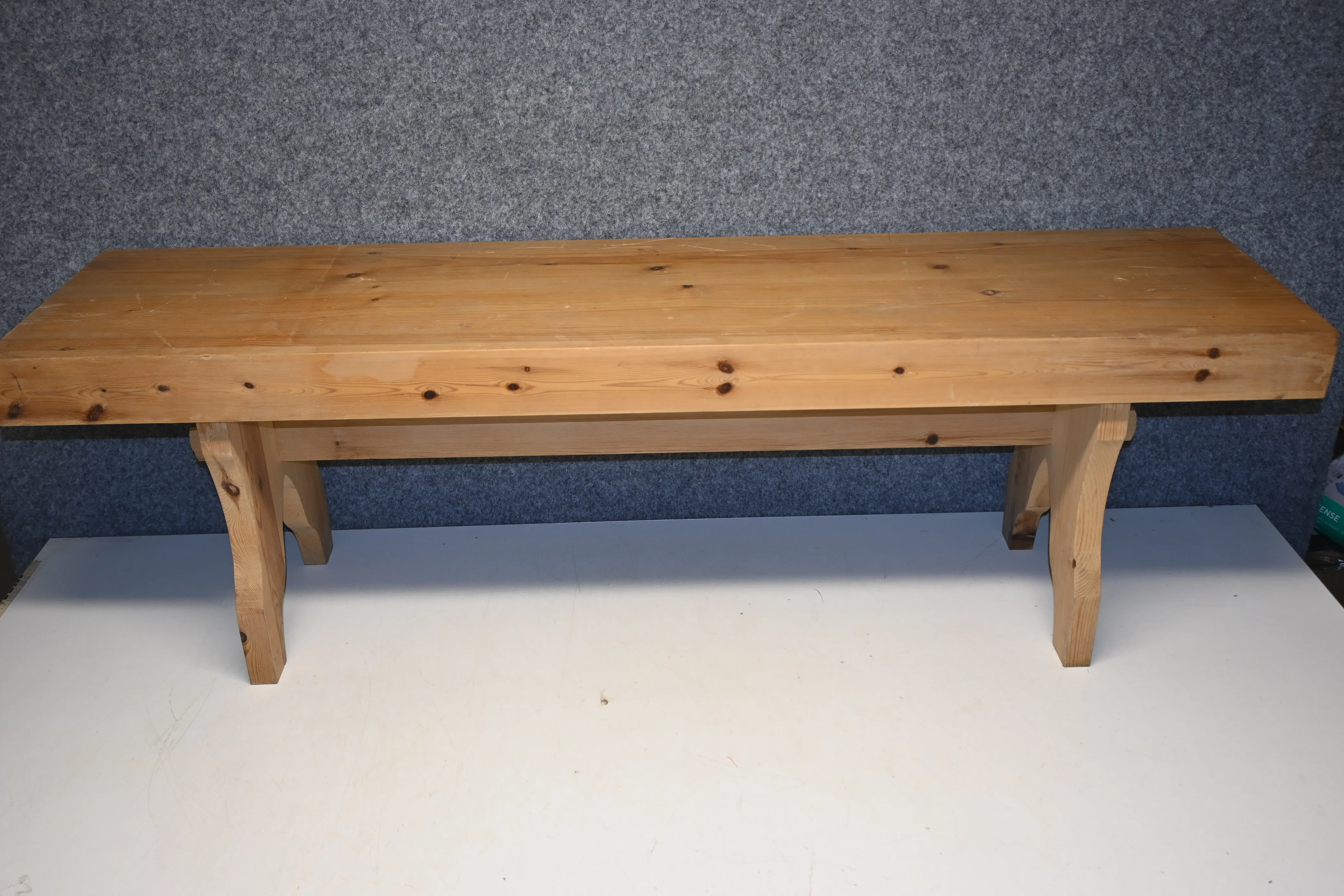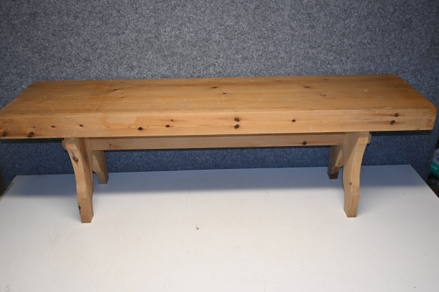 Bänk i fura L.149cm H.46cm B.37cm (bruksslitage, märken)