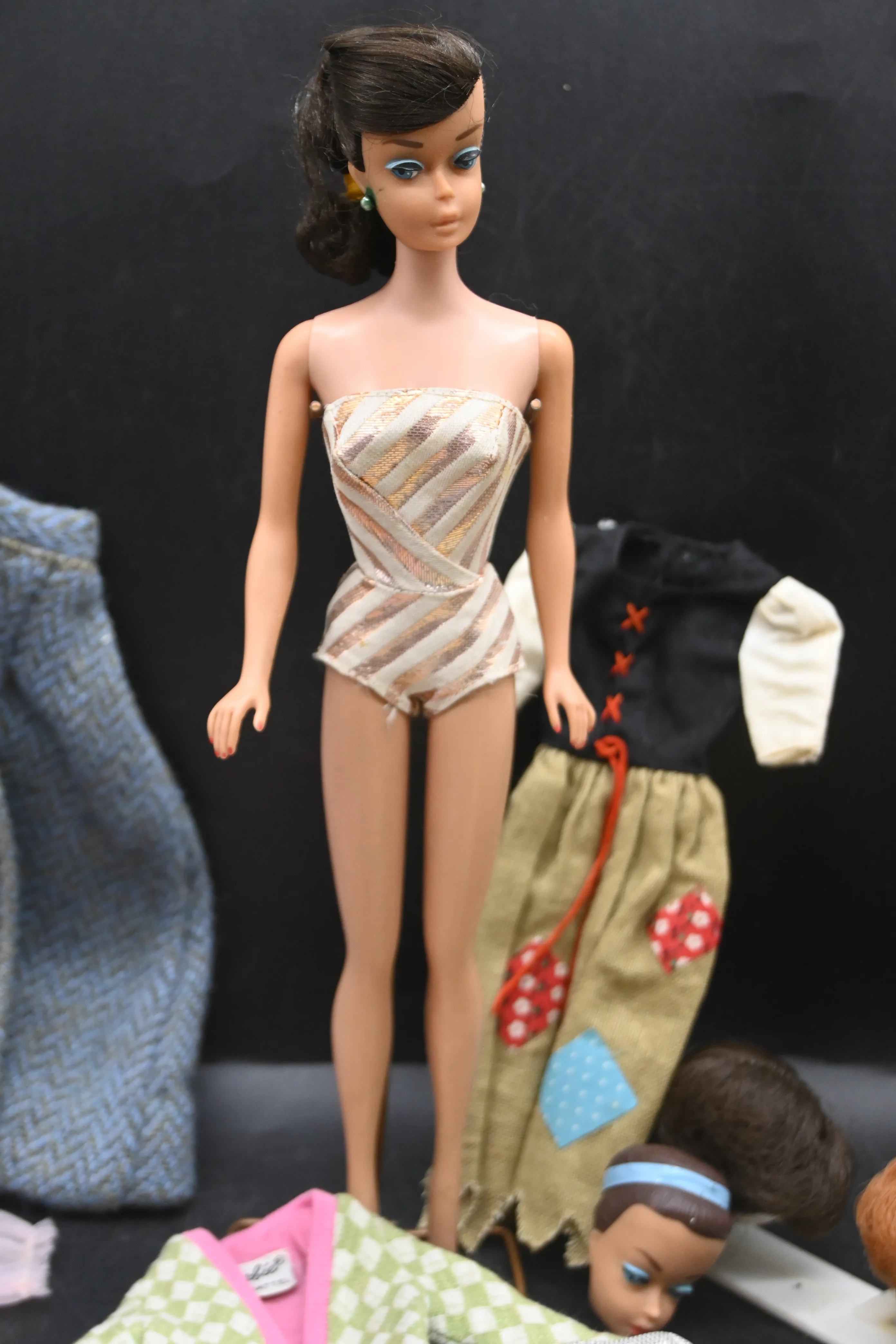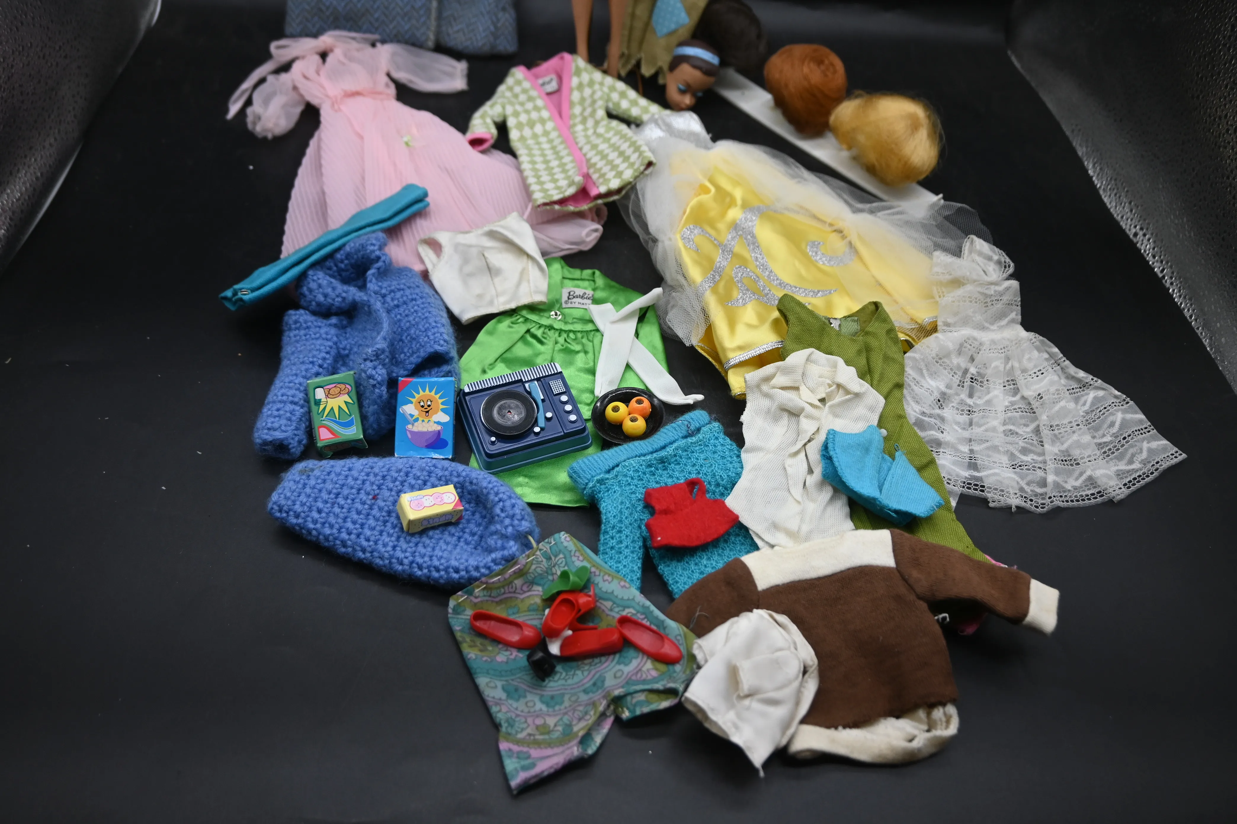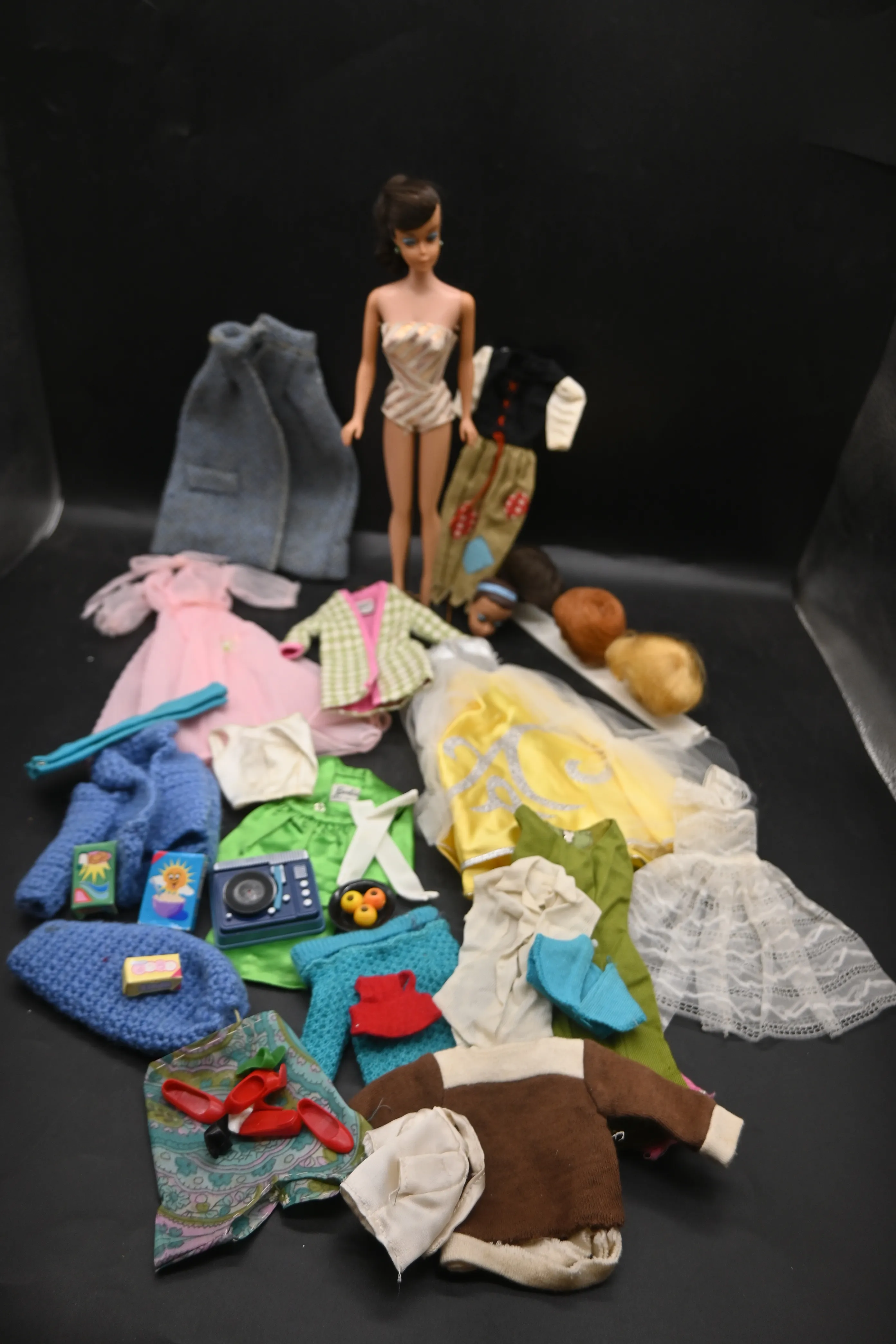 134. Barbiedocka, Midge 1958 med extra huvud, peruker samt kläder