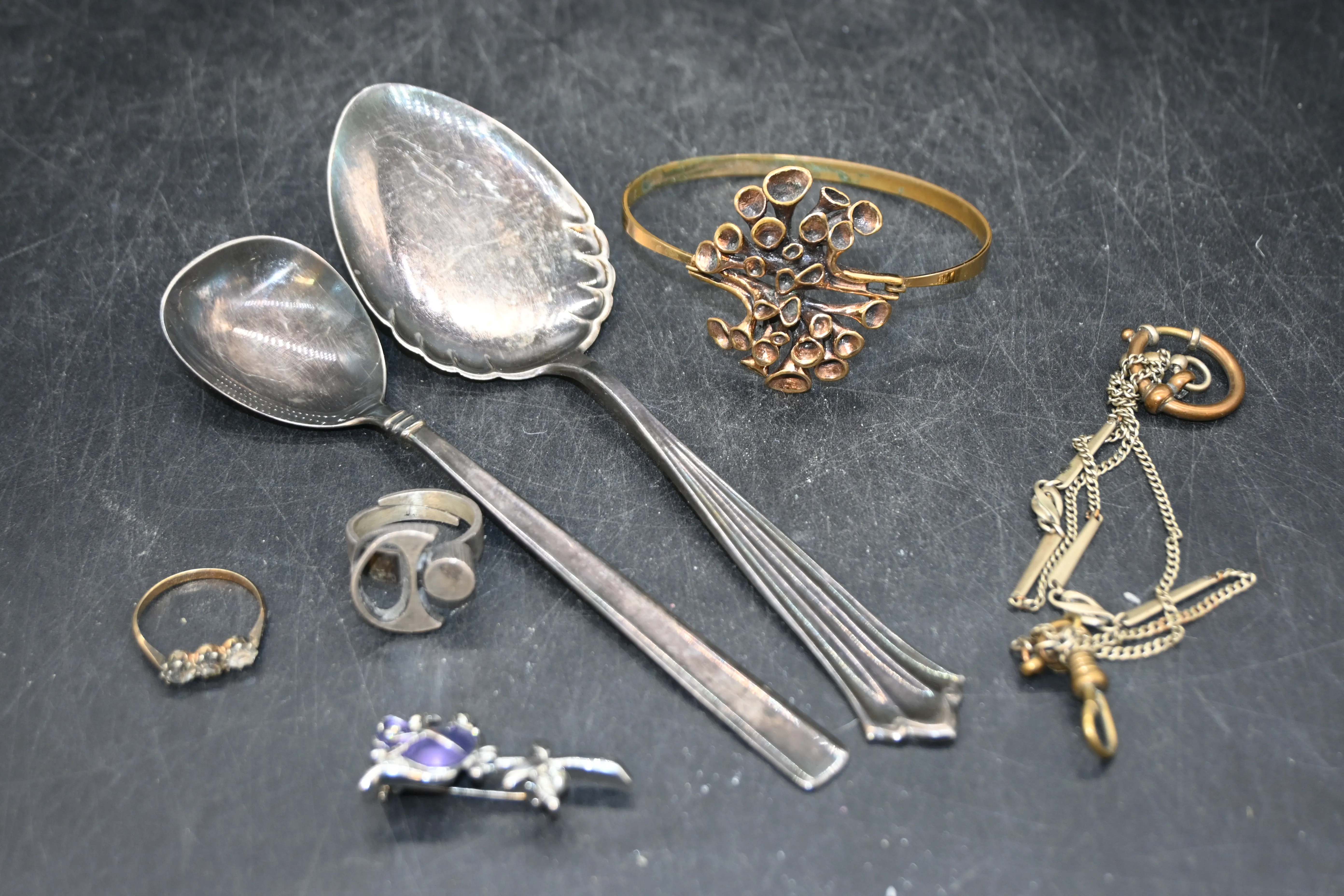 680. Bestick i silver 2st, ringar bl a silver, armband troligen Finland .vikt 49gr