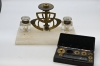 669. Bläckhornsställ m våg + mässing vikter