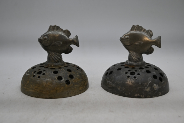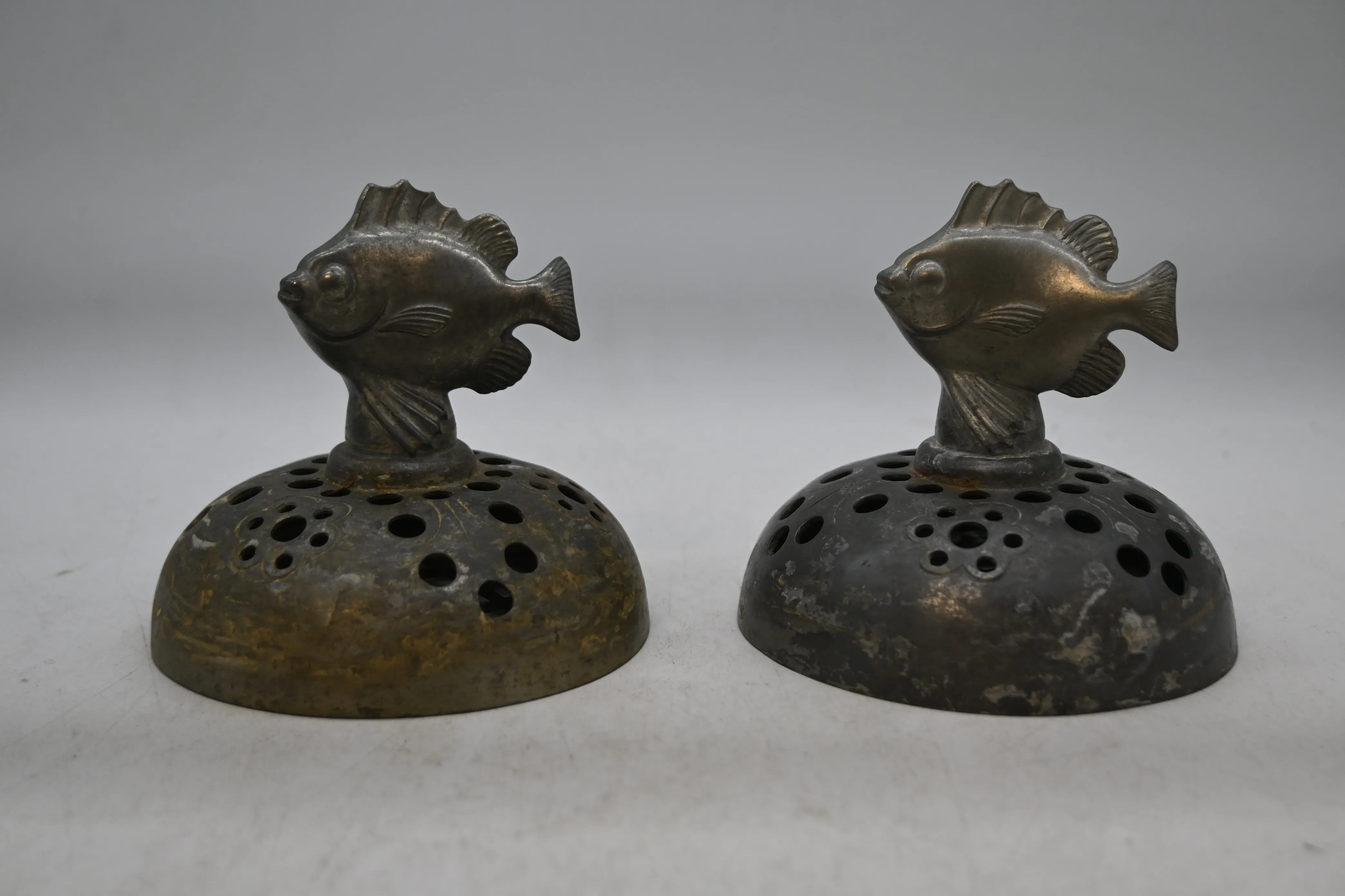 277. Blomsterhållare 2st i tenn Art Deco "JUST" H:9.5cm D.10.5cm