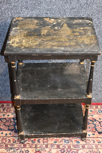 Bord m hyllor sekelsk 18/1900.tal H:74cm B.47cm Dj.38cm (färgslitage)