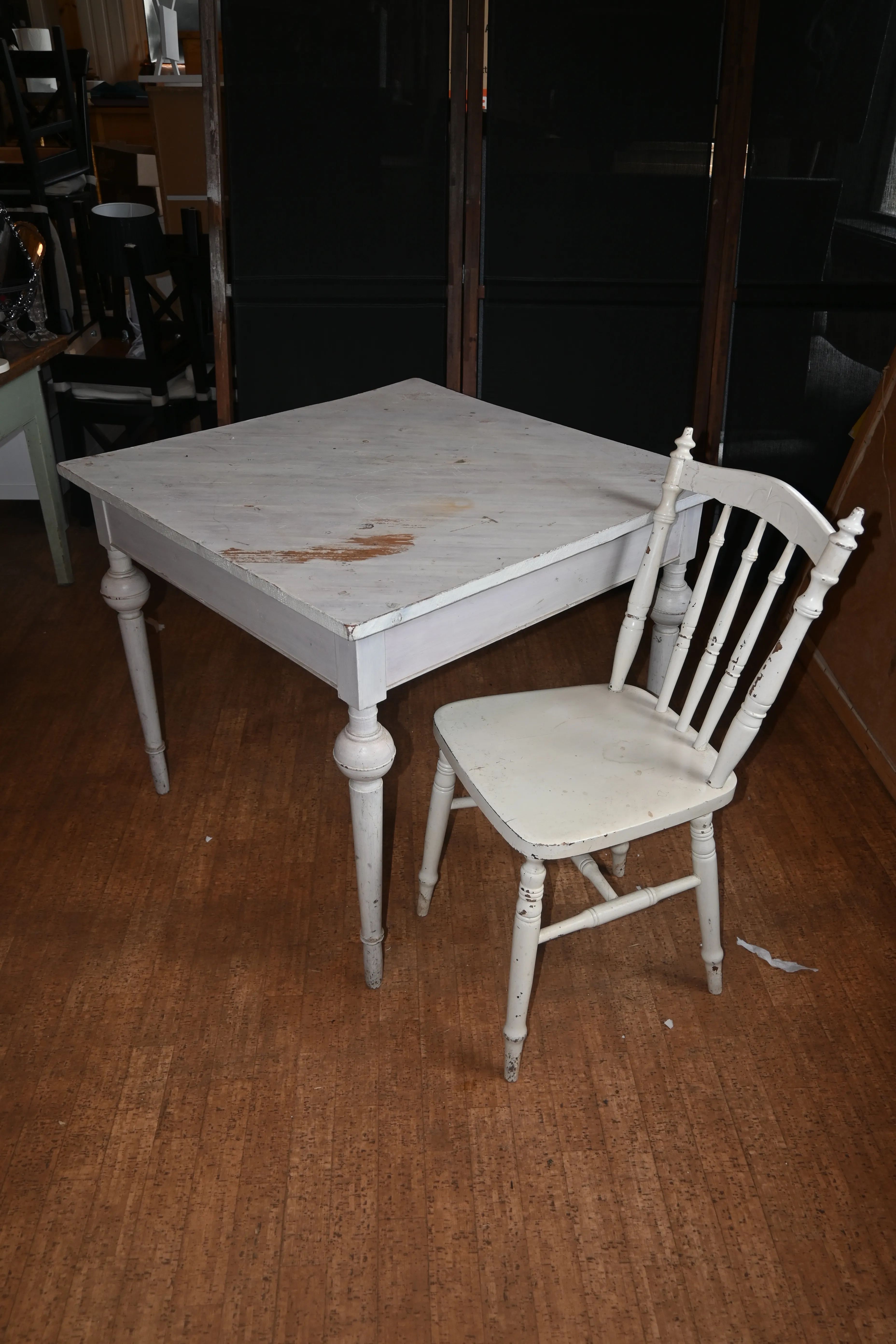 Bord med svarvade ben + stol + spegel H.74.5cm B/L=86x86cm